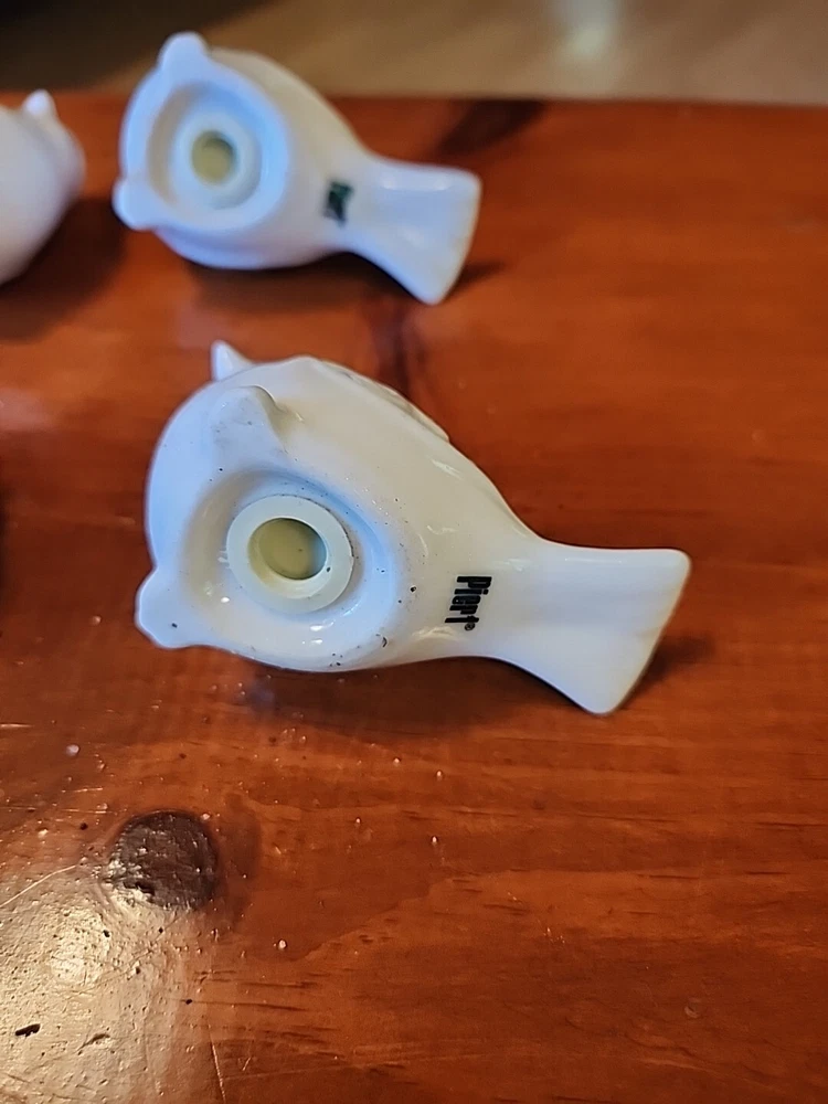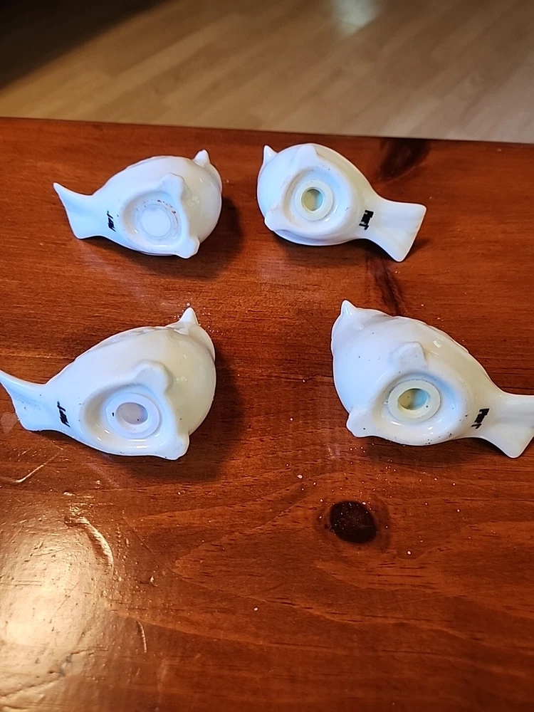Please See pictures the 1st Set R perfect I will put tape over holes because They do have pepper& salt in them. I Never like to take stoppers out .The last 3 pictures R an extra set I'm including because the 1 beak is broken but still usable:)