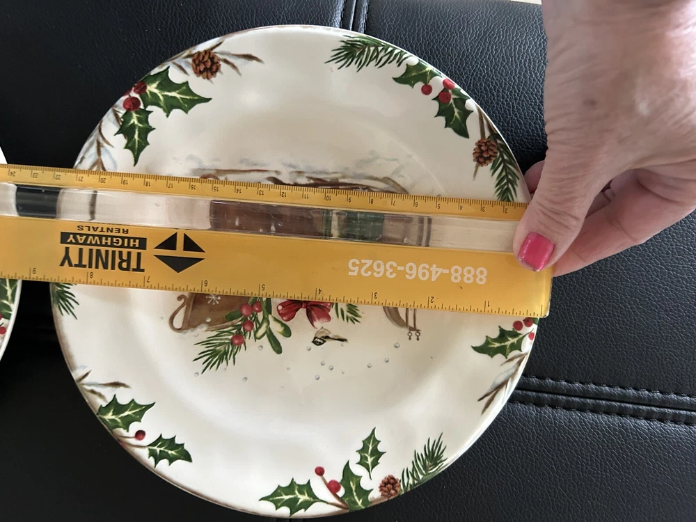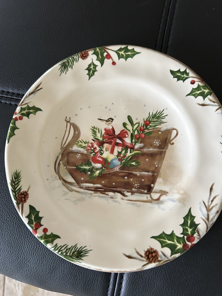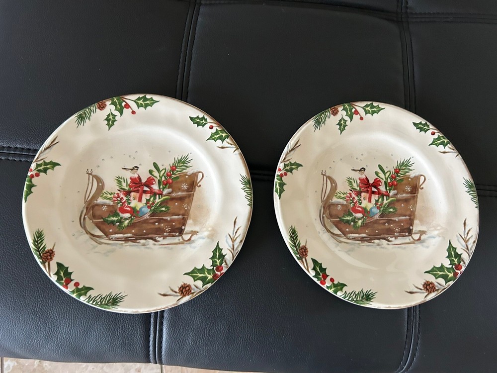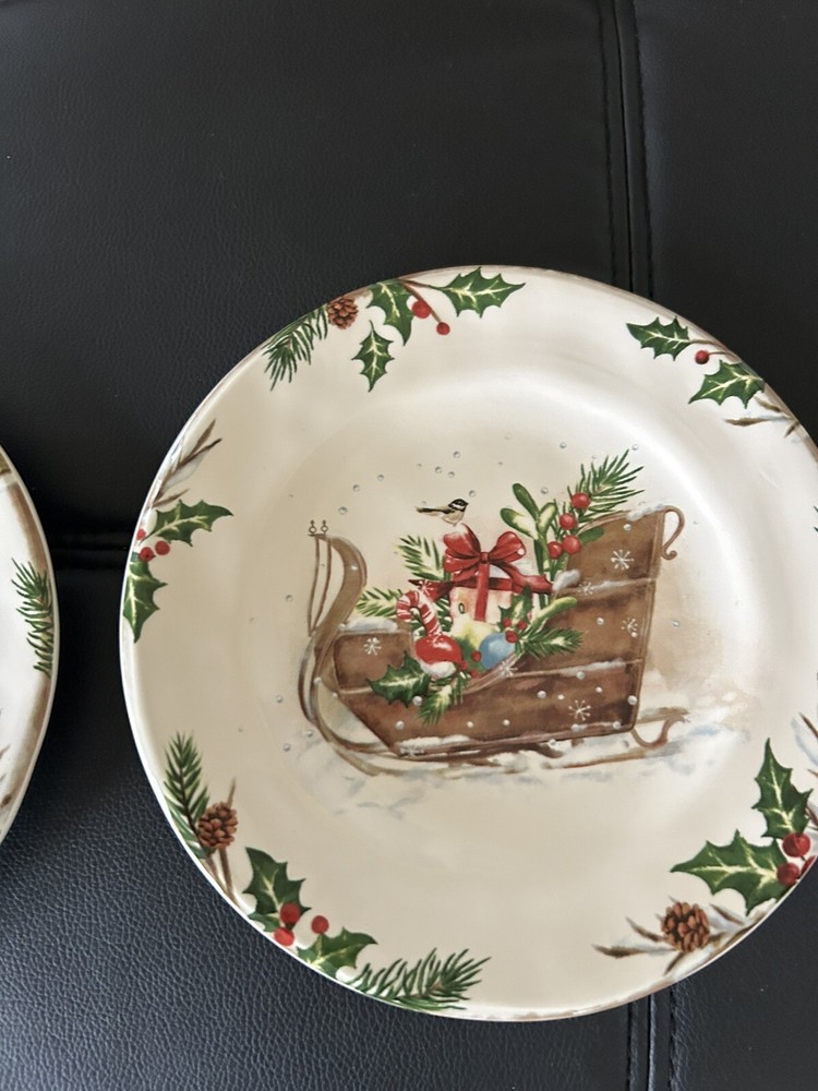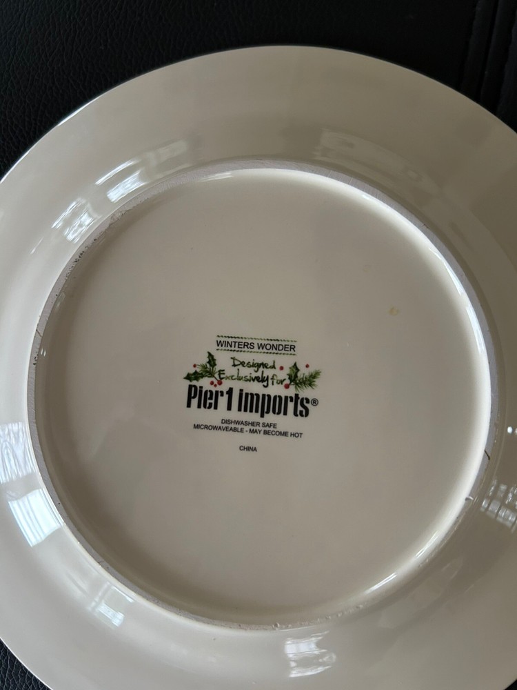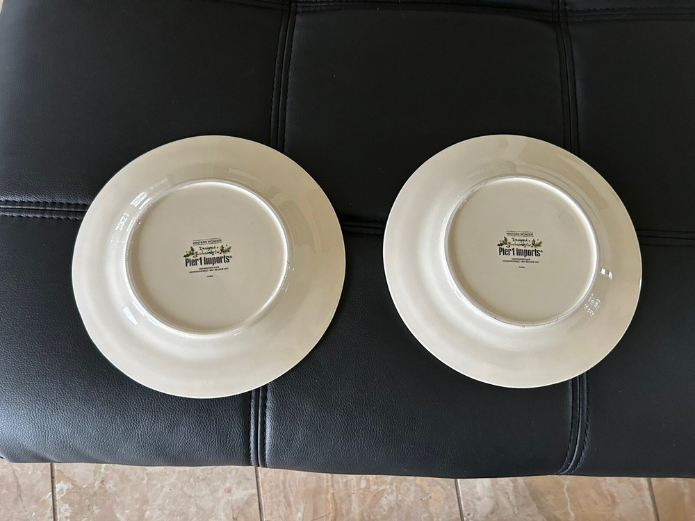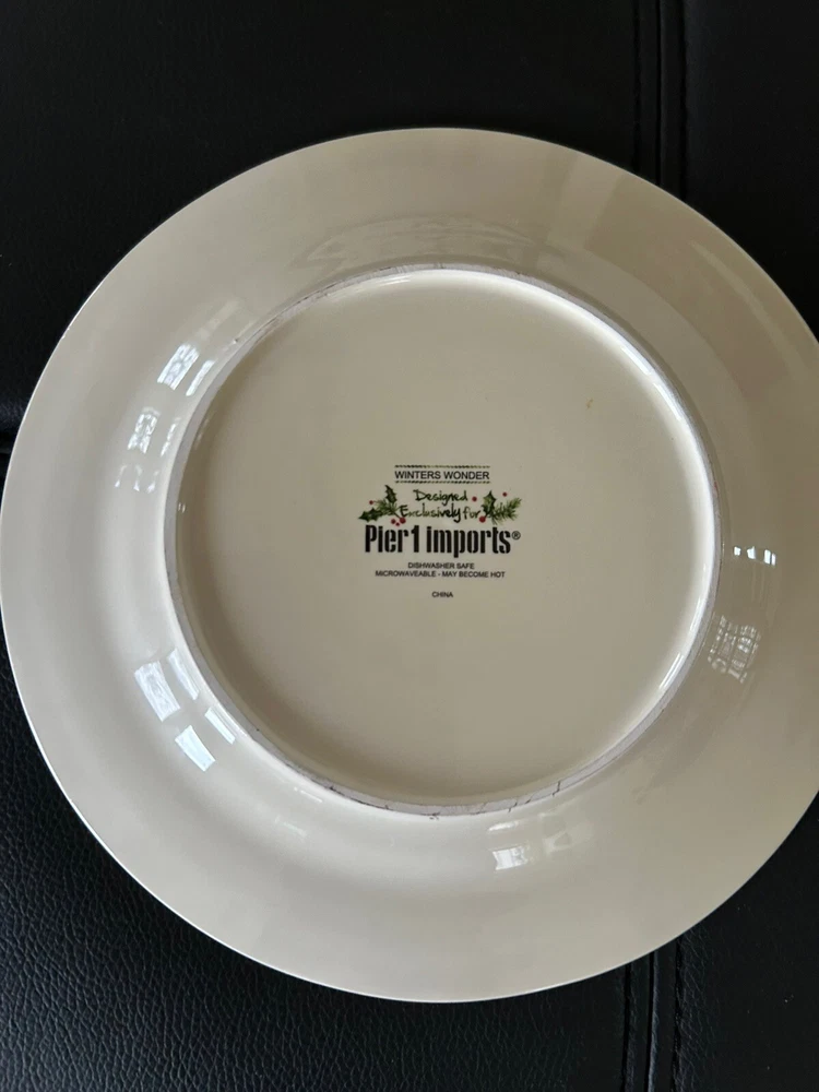 Add a touch of festive cheer to your holiday table with this Pier 1 Winter Wonders Christmas Sleigh Gifts Holly Salad Plate. The 8.75-inch ironstone plate features a glossy finish and a colorful Winter Wonders pattern that includes a bear, Christmas sleigh, gifts, and mistletoe. Whether you're hosting a formal dinner or a casual meal, this decorative plate is sure to impress your guests. Crafted in China, this salad plate is dishwasher and microwave safe, making it a practical addition to your holiday decor. The plate is round in shape and has a contemporary style that fits well with any modern or traditional setting. Perfect for teens and adults, this original Pier 1 Imports product is a great addition to your Christmas collection. Lot of two identical plates very good condition no chips or cracks. I never really used these. They’re basically just been in storage.