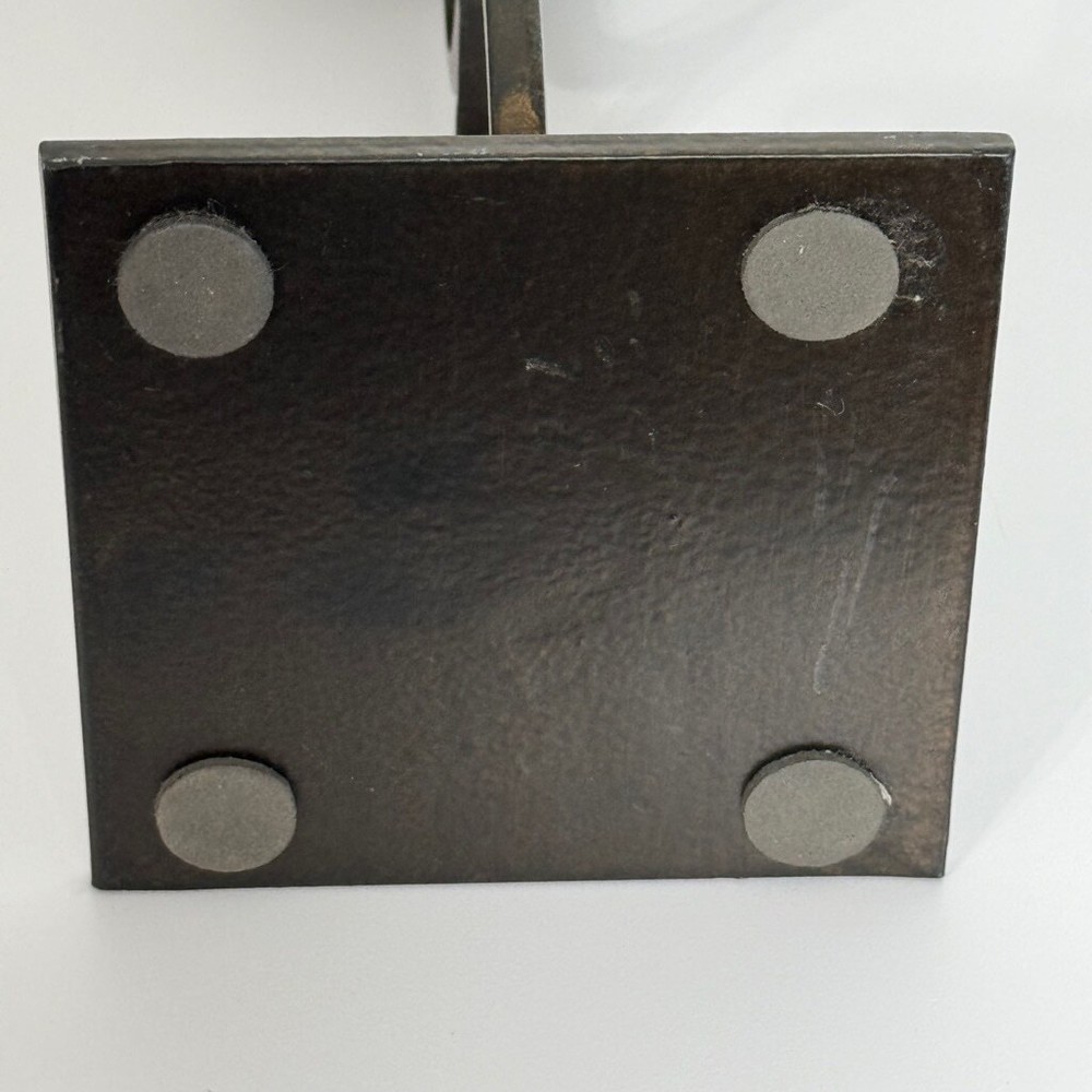 Hand forged metal finished antiqued bronze candle holder. H 9.5” X W 4.5” X D 4”