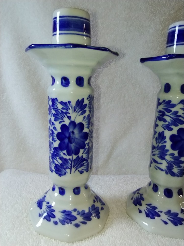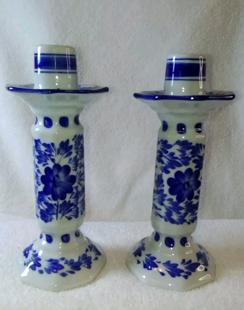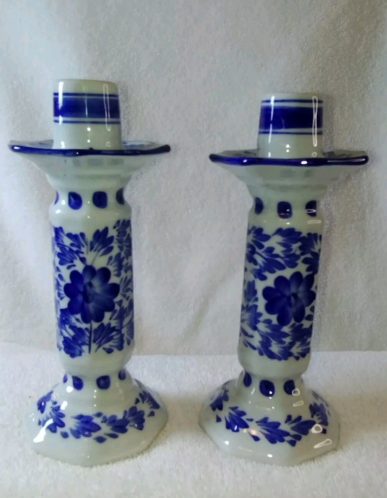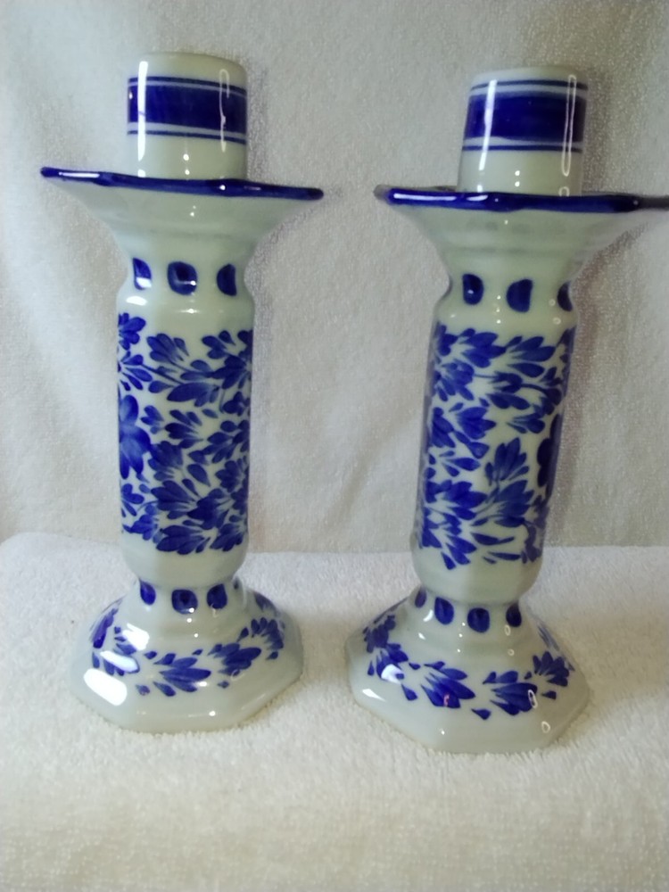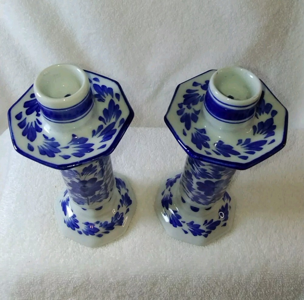 Beautiful two piece set of Pier 1 candle holders Excellent condition No chips no cracks no brakes White and blue and color featuring floral print If you have any questions please feel free to contact ...