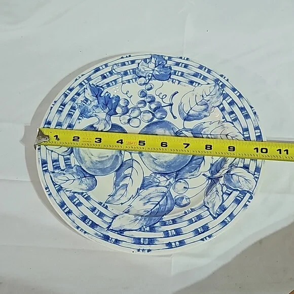 ~Pier 1 imports cottagecore blue & white vintage style fruit plate/dish kitchen. Measurements are in the photos. SHIPPING - We may, at time of shipment, SHIP WITH A MORE OPTIMIZED CARRIER (USPS, UPS, OR FedEx) THAN THE CARRIER SPECIFIED IN THIS LISTING. If this is an issue, please let us know when purchasing. We always upload a tracking number for your shipment into your purchase history. We ship the next business day of your purchase, and sometimes same day if your purchase is made early. Holiday, Friday, Saturday, and Sunday purchases will ship on the following business day. We will pack your item carefully to insure safe arrival. We recycle boxes and packing material. We will ONLY ship to the purchasers address registered on eBay! Delivery dates are eBay ESTIMATES and may not reflect true delivery dates. We do not include an invoice unless requested. RETURNS - The buyer pays all return shipping costs. All returns must be sent back in the condition that they were received in.