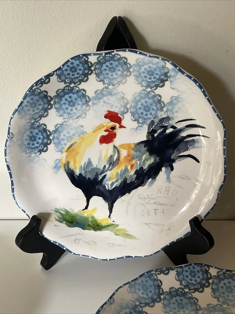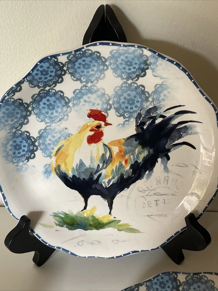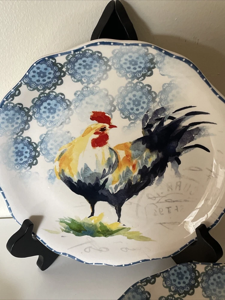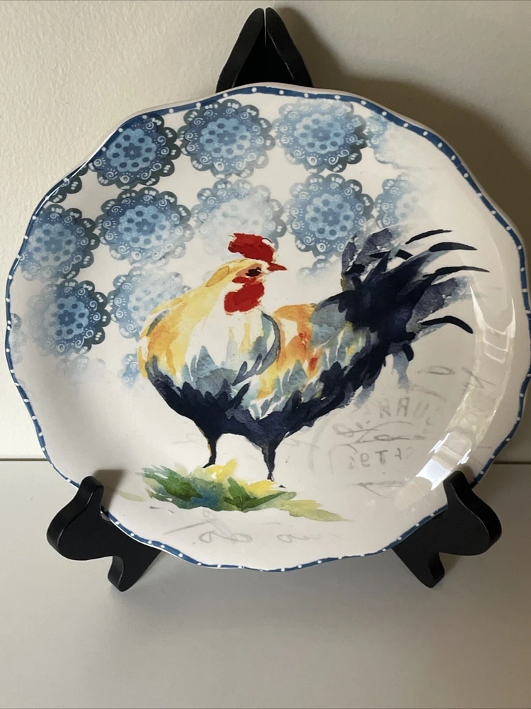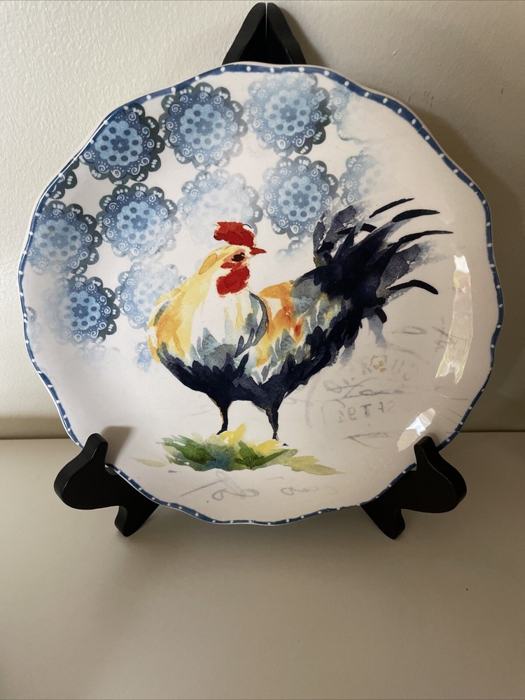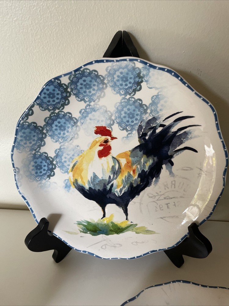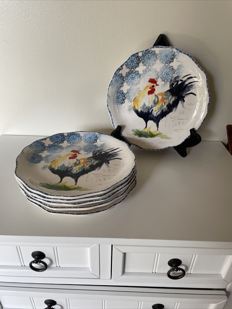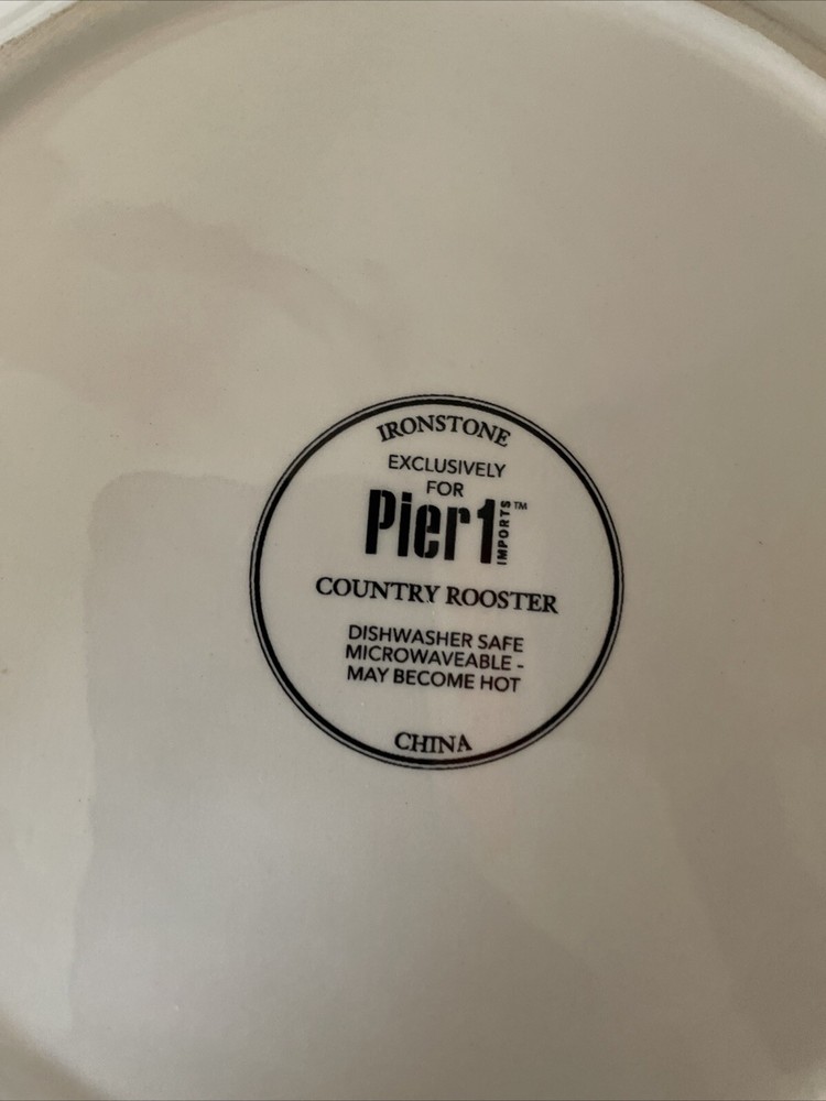 Lot of 6 Dessert Lunch Plates - Country Rooster by Pier 1 - 8.75" Round Add a touch of elegance to your dining table with this set of 6 Pier 1 Imports Country Rooster luncheon plates. Each plate features a colorful rooster pattern on glossy ceramic material, perfect for complementing your Country Rooster collection or mixing and matching with other country-style tableware. Key Features: Brand: Pier 1 Imports Material: Ceramic (Ironstone) Size: 8.75" in diameter Shape: Round Dishwasher Safe: Yes Microwave Safe (may be hot): Yes Glossy Finish: Yes Made in China These plates are ideal for serving lunch or desserts with a unique, stylish flair. The ample 8.75" diameter provides enough space for your favorite dishes, while the colorful rooster design adds a fun, country touch. Condition: EUC (Excellent Used Condition): One plate has a tiny 1mm flea bite chip (see photo). There are no cracks or crazing. All other plates are in like-new condition. Perfect for everyday use or special occasions, these plates are sure to be a conversation starter and impress your guests! ------------ Thank you for choosing our products. We strive to provide you with the best quality and service. Here are some important details about your order: - We ship your items within 24 hours of receiving your payment confirmation. - We have a variety of products for sale on our E-bay store. You can browse them by clicking on the link below. ; My Items - We kindly request that you complete your payment within 3 days of placing your order. This will help us process your order faster and avoid any delays. - We make sure to include clear and accurate pictures of our products on our listings. Please review them carefully before making your purchase, as they are part of the product description. - We appreciate your feedback and support. Please add us to your favorite seller list and check our store regularly for new items and promotions.
