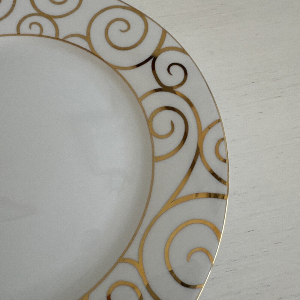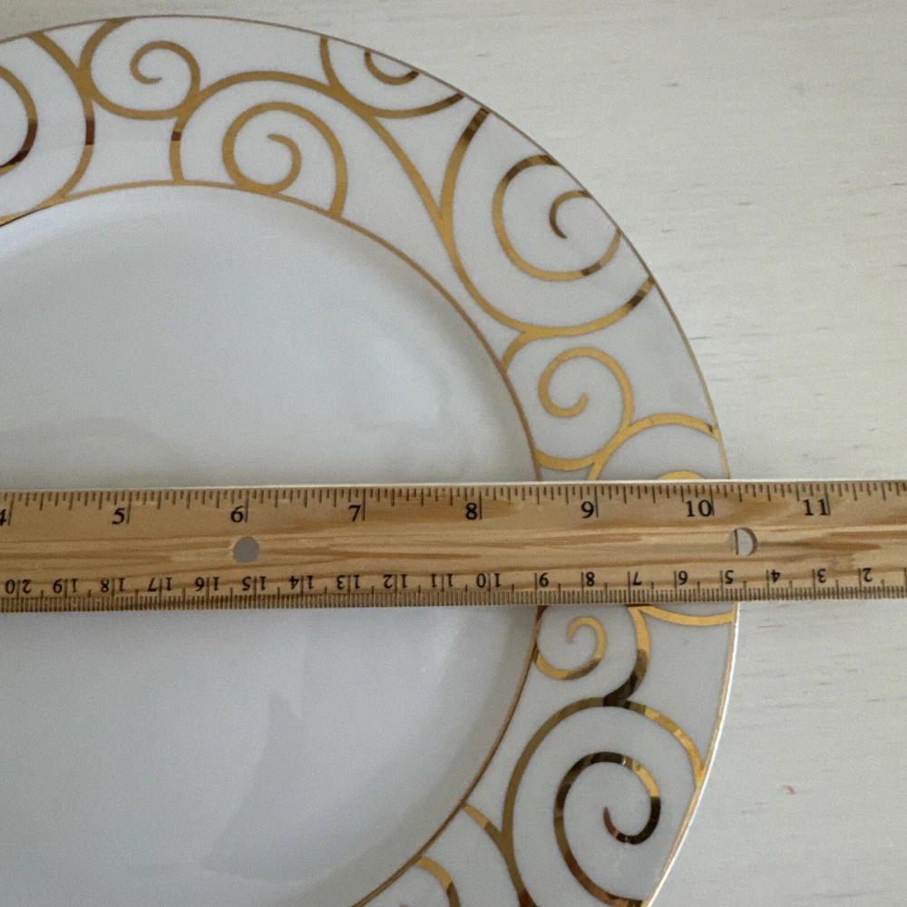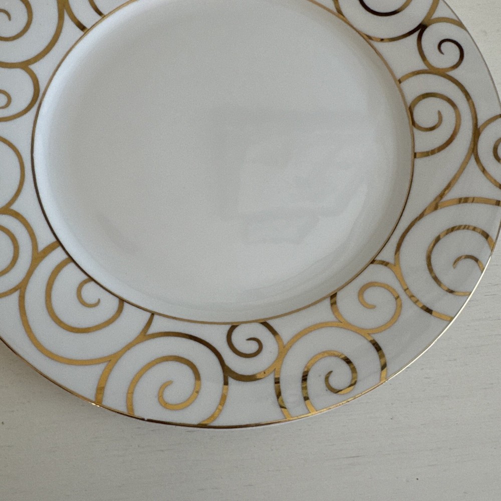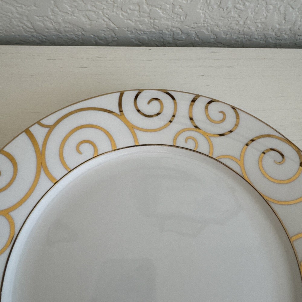 Replace or elevate your dining experience with the Pier 1 Gold Swirl Dinner Plate, a exquisite piece of porcelain that brings a touch of elegance to any table setting. The 10.25" diameter plate features a stunning swirl pattern in a rich gold hue, perfectly suited for special occasions or to add a luxurious element to your everyday meals. Crafted with care, this dinner plate hails from Pier 1's esteemed collection and showcases the fine art of pottery with a printed backstamp confirming its authenticity. Whether you're hosting a holiday dinner or serving a gourmet meal, this plate is a chic choice for those who appreciate the blending of sophistication and functionality.