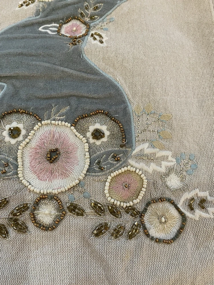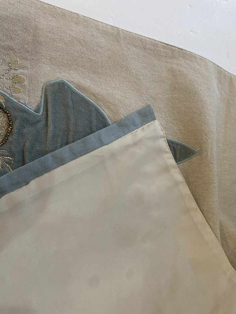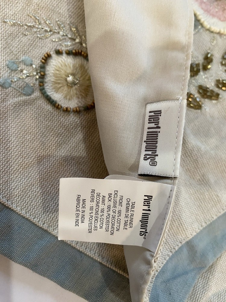 Pier One Table Runner Linen Beaded Embroidery Bunny Rabbit Velvet Spring Easter In very good condition. Retired....
