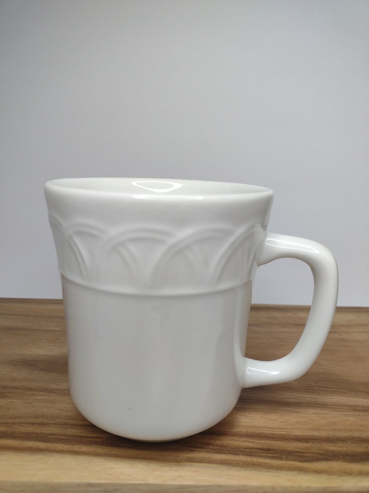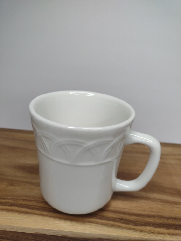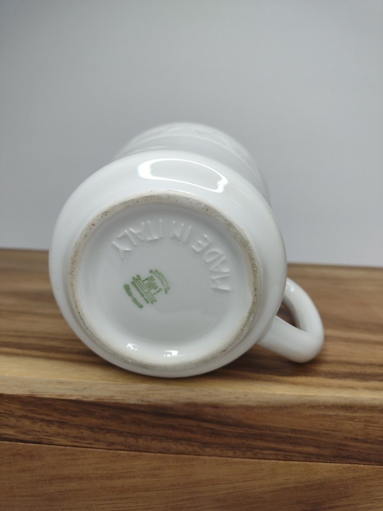 Pier One Glazed Ceramic Coffee Mug Basket Design White Made in Italy....