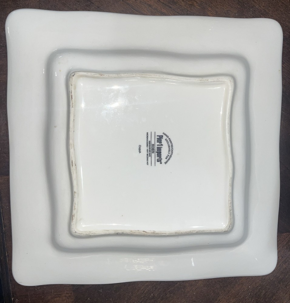 Pier One Hand Painted Earthenware Plate with Robin on a Branch. Condition is Used. Shipped with USPS Ground Advantage.