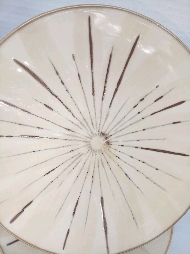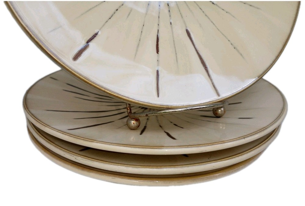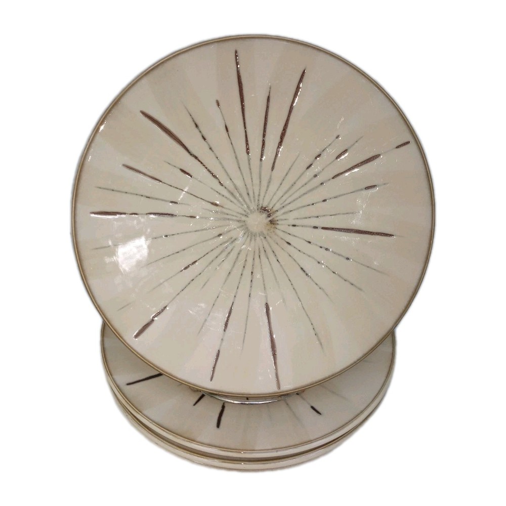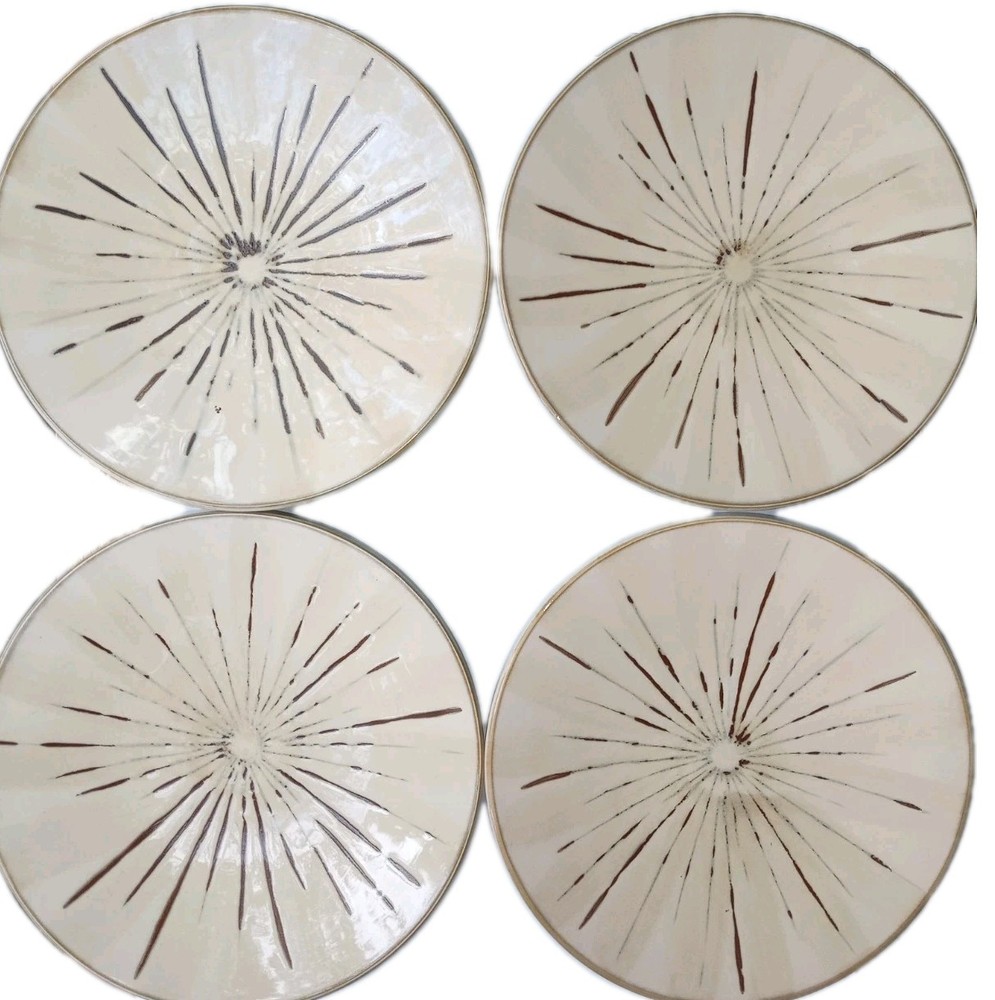 Pier One Import Sanctuary 8.5" Salad Plates Set Of 4 Tan Starburt. Condition is Used. Shipped with USPS Ground Advantage....