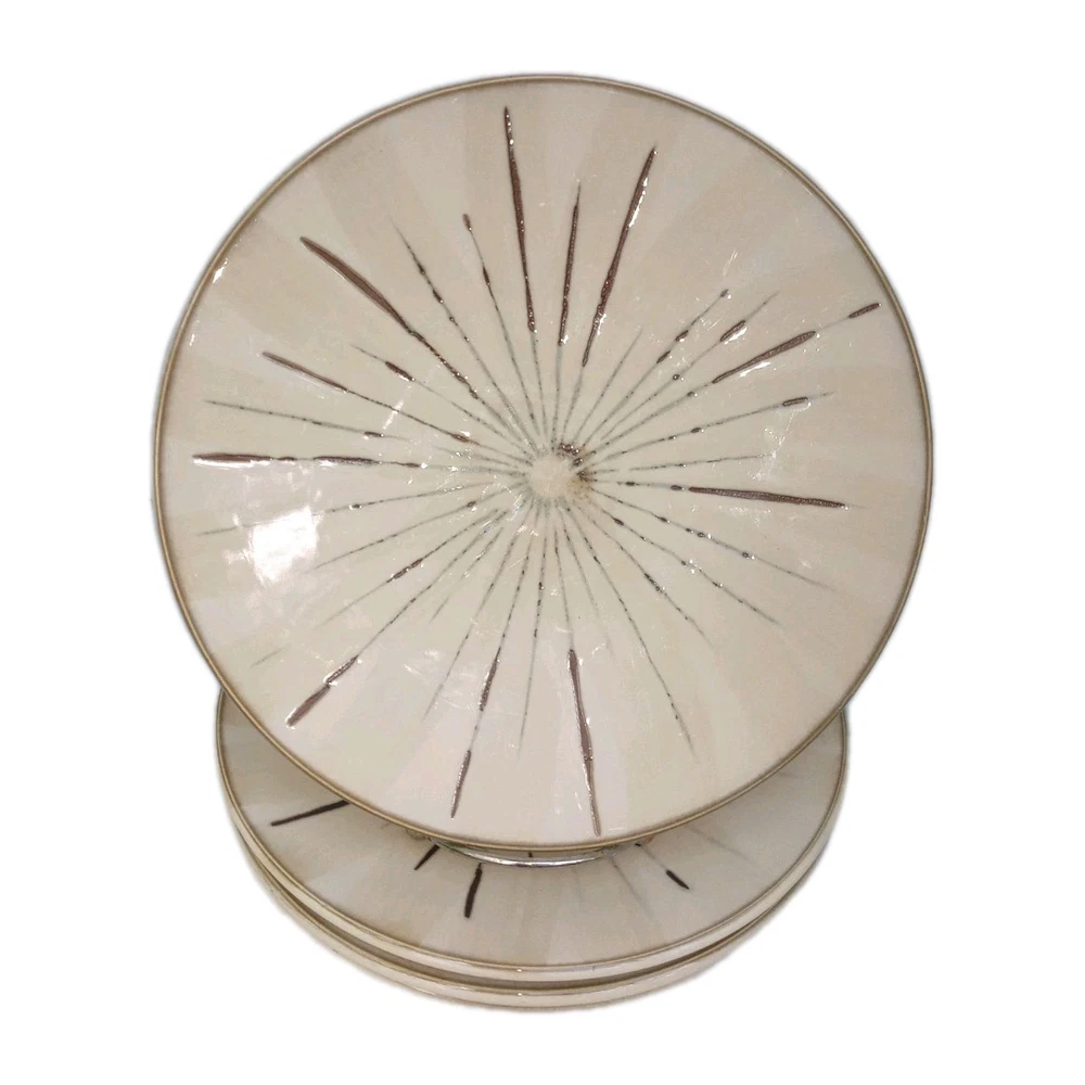 Pier One Import Sanctuary 8.5" Salad Plates Set Of 4 Tan Starburt. Condition is Used. Shipped with USPS Ground Advantage.