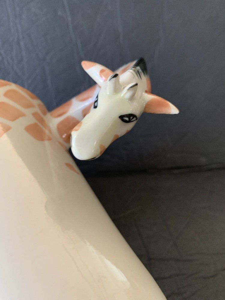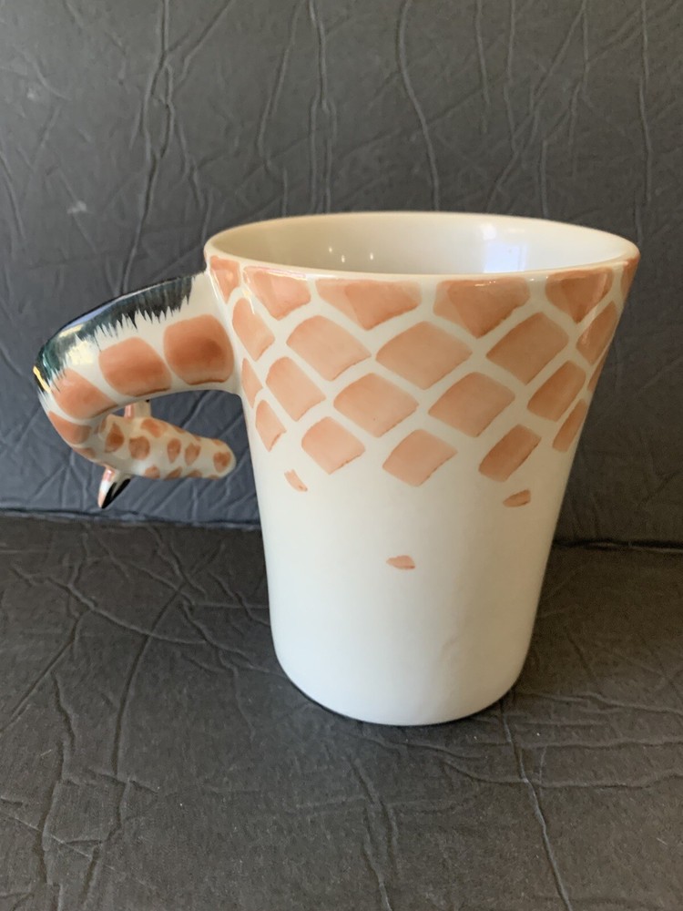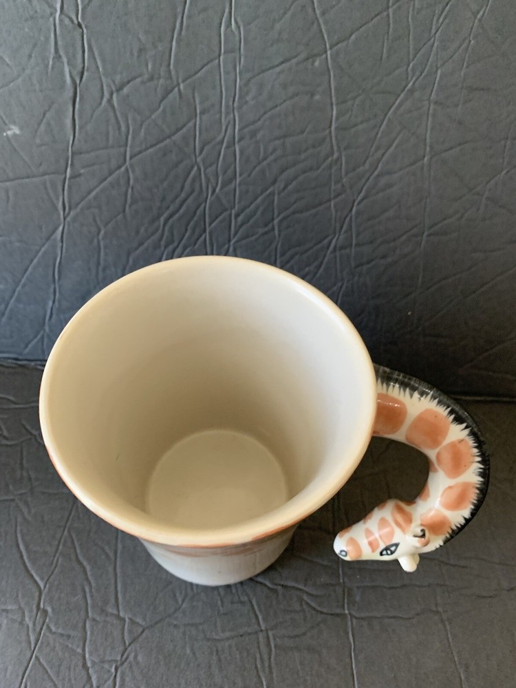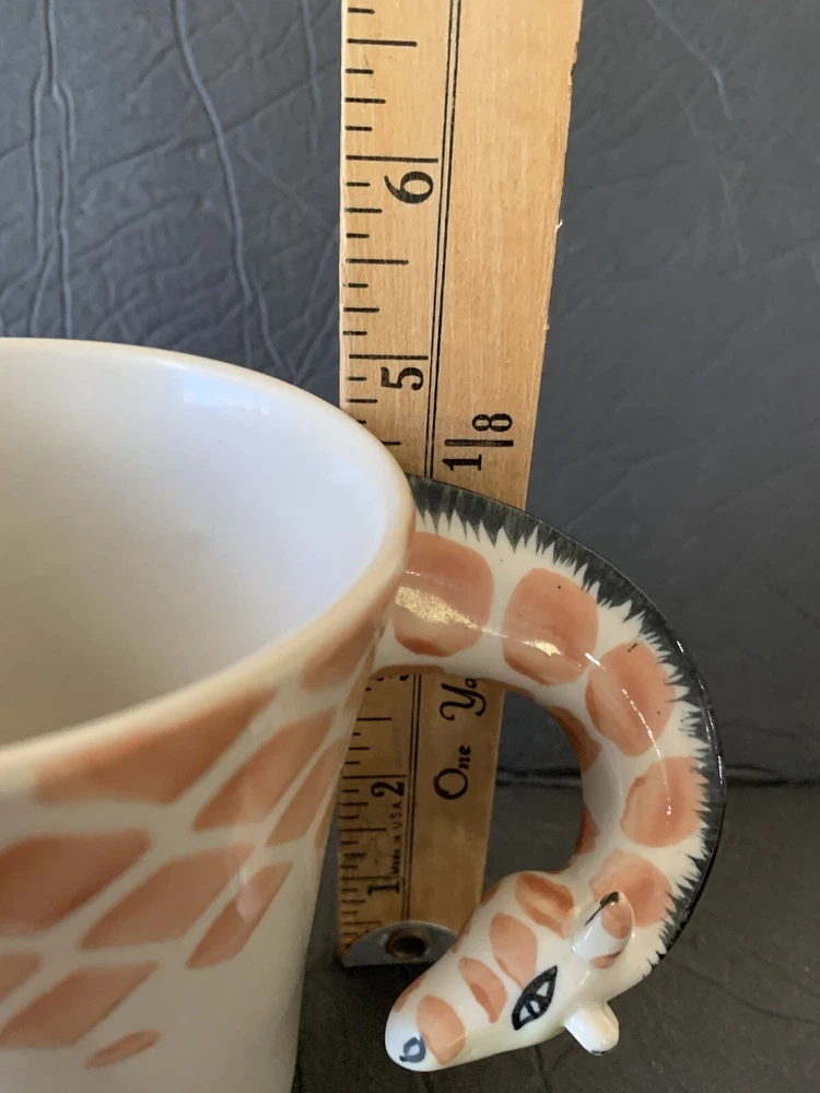 This listing is for a Pier One Imports giraffecoffee tea cup mug with the long neck of the giraffe as the handle. The mug is 4.75 inches in height....