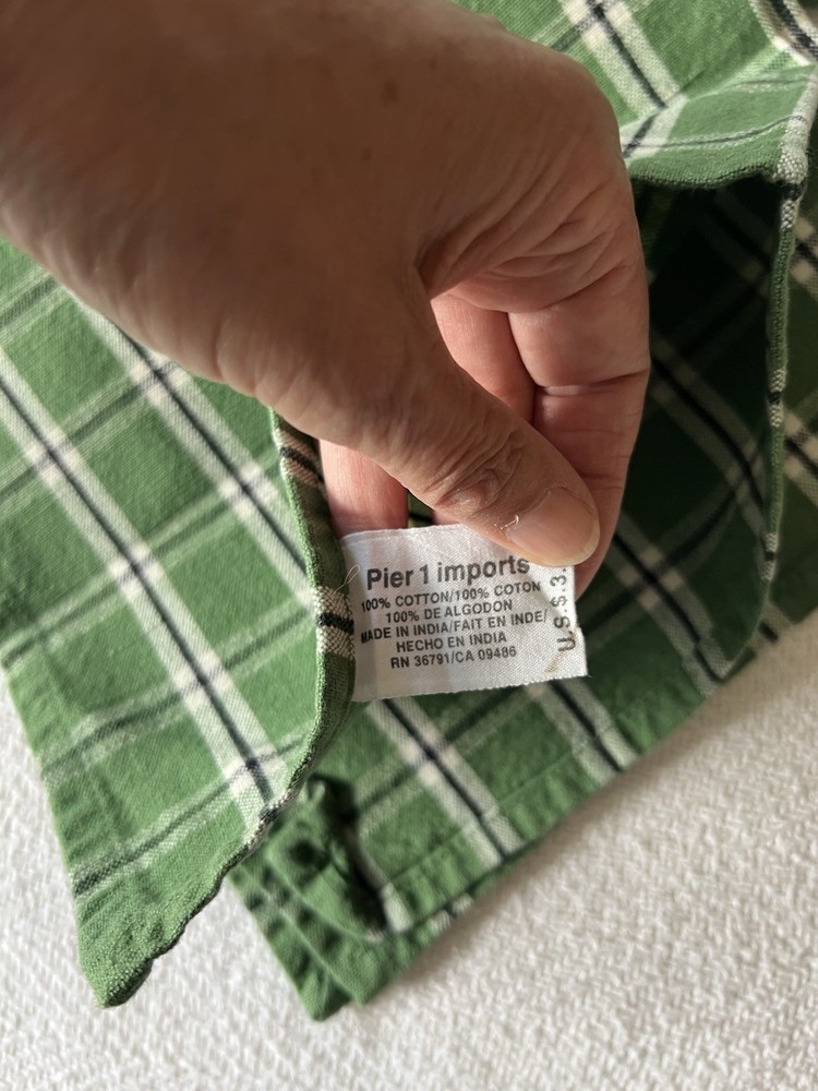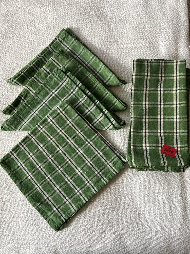 The Pier One Imports Green Cotton Napkins are square-shaped, measuring 20x20 inches, and made of machine washable cotton. With a vibrant green color, these napkins are perfect for multipurpose use in the kitchen, dining room, or garden. The set includes a mix of four used and four new napkins, making a total of eight in all. With a classic and versatile design, these napkins are sure to add a touch of style to any dining experience.