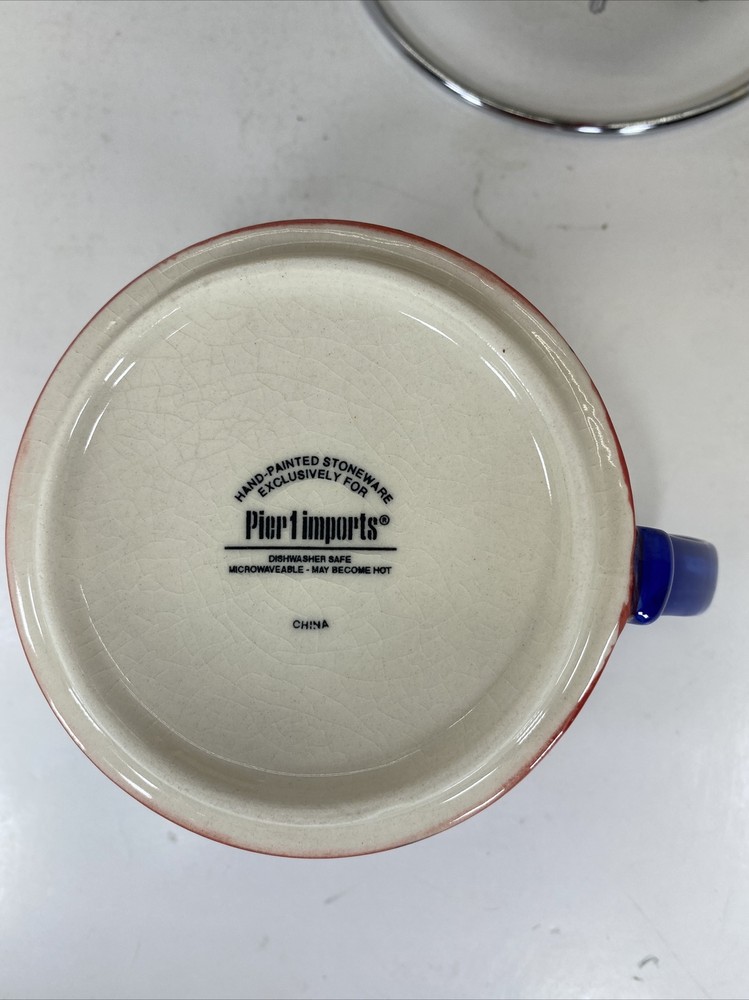 Pier One Imports Owl bird Mug Set Stackable, green blue red orange, HandPainted. . With Rack. 20220827SEC