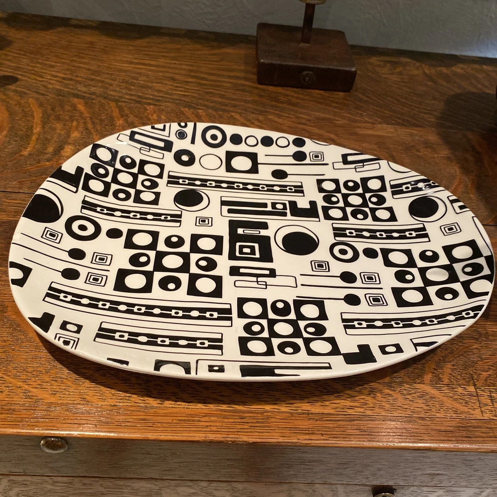 Pier One Imports Traffix 12" Serving Platter Plate Black White Geometric Design.