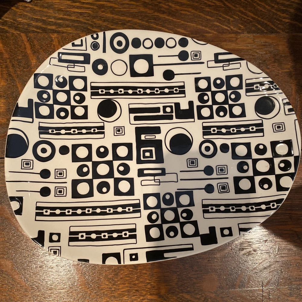 Pier One Imports Traffix 12" Serving Platter Plate Black White Geometric Design....