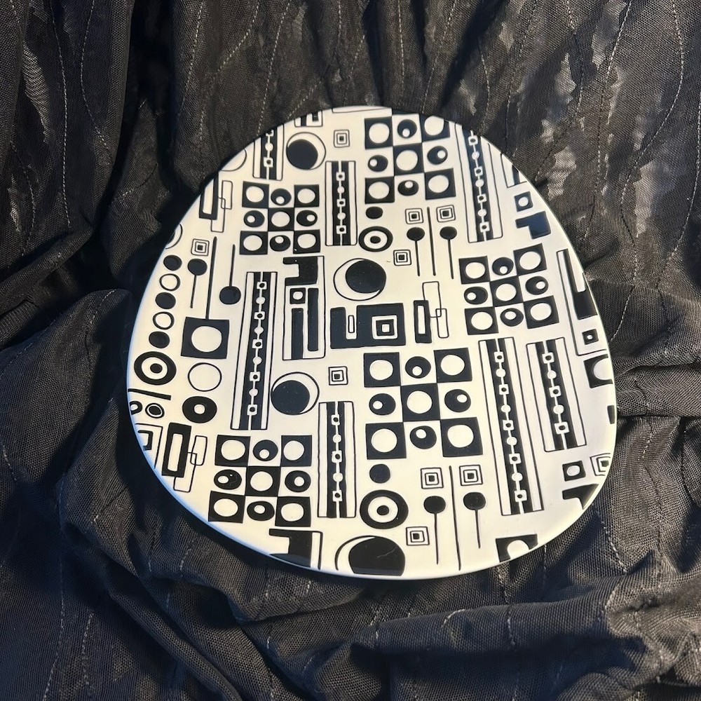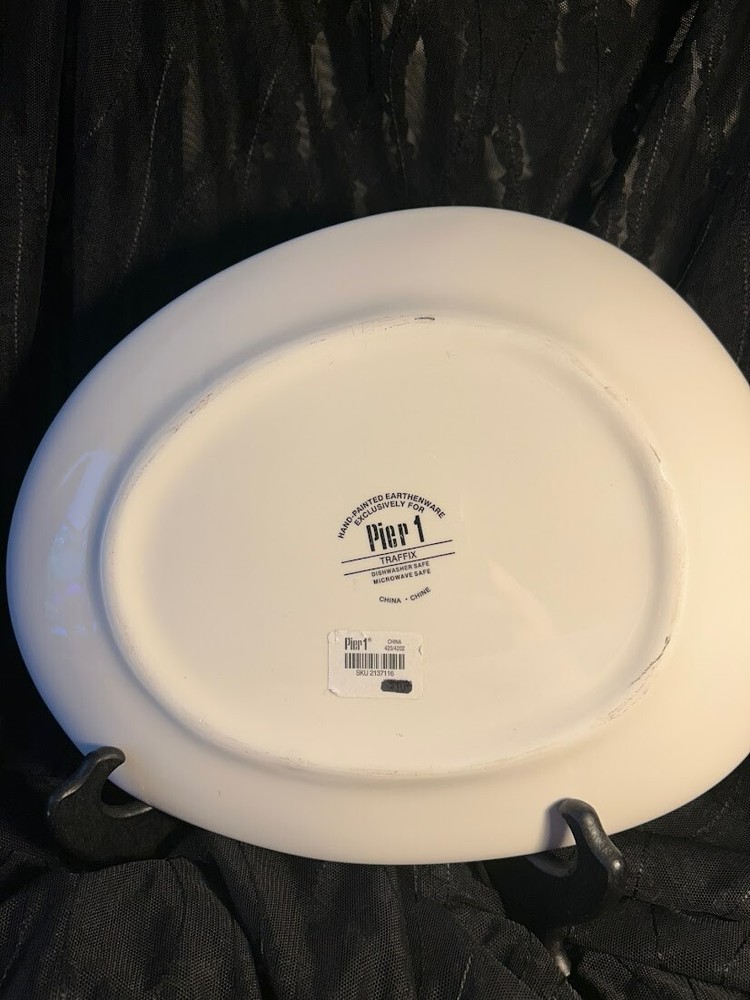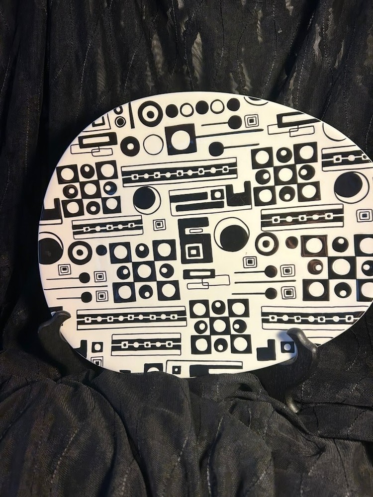 The Pier One Import Traffix 12" Serving Platter Plate in Black and White features a stylish geometric design, making it perfect for all occasions. Made of ceramic with a glossy finish, this medium-sized oval plate is both microwave and dishwasher safe for convenience. The abstract theme and sleek white color add a touch of elegance to any dining or entertaining setup. With dimensions of 12 inches in length and 9.5 inches in width, this versatile platter plate is a must-have for your kitchen or dining area.