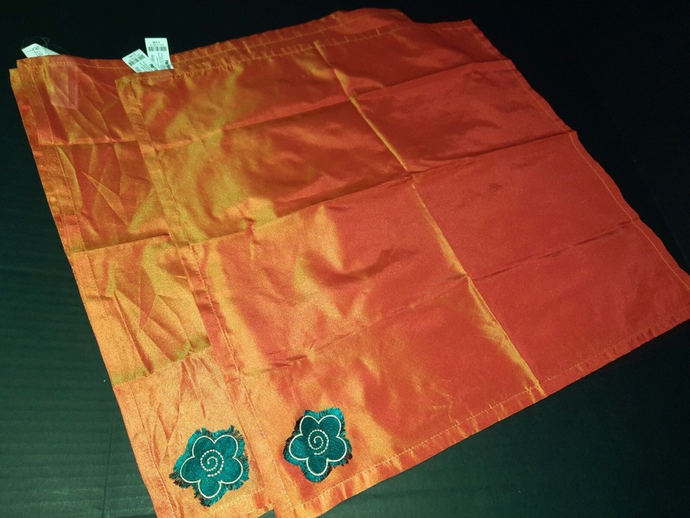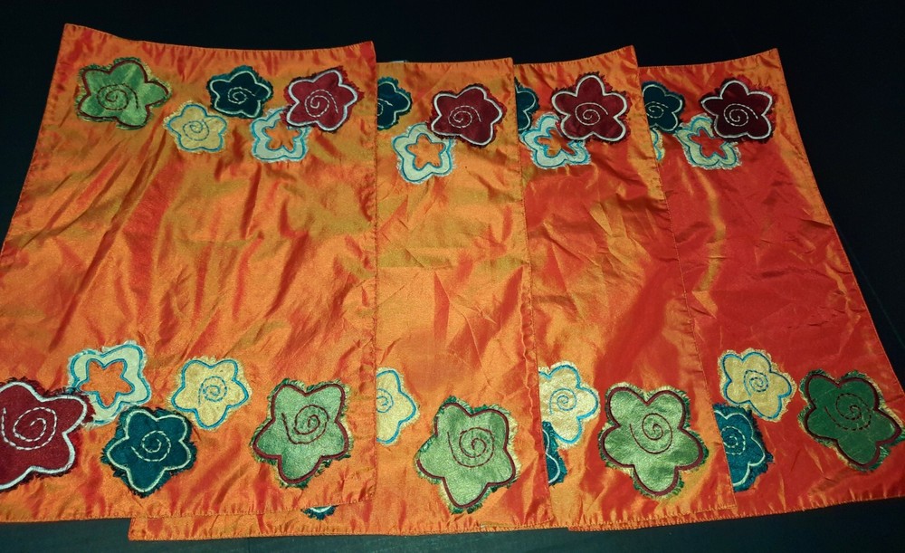 Pier One Imports Placemats/napkins. You get four placemats and four matching napkins. Tags say pier one imports. Iridescent orange with flowers.