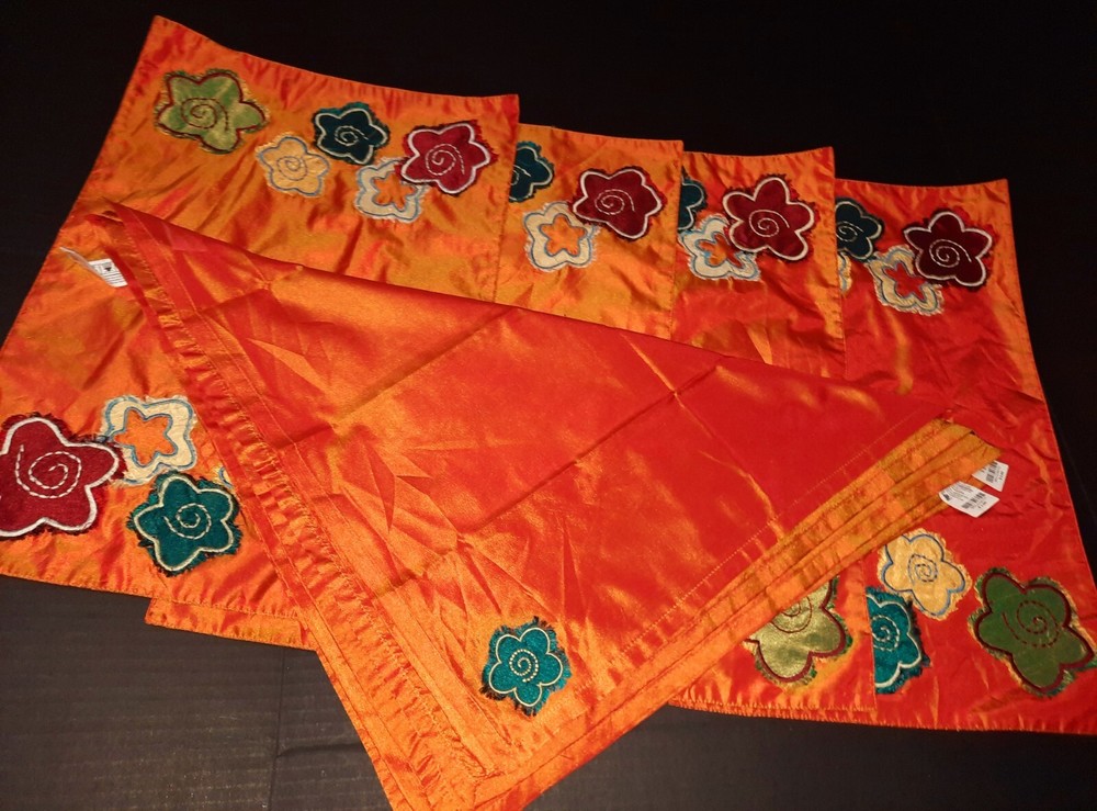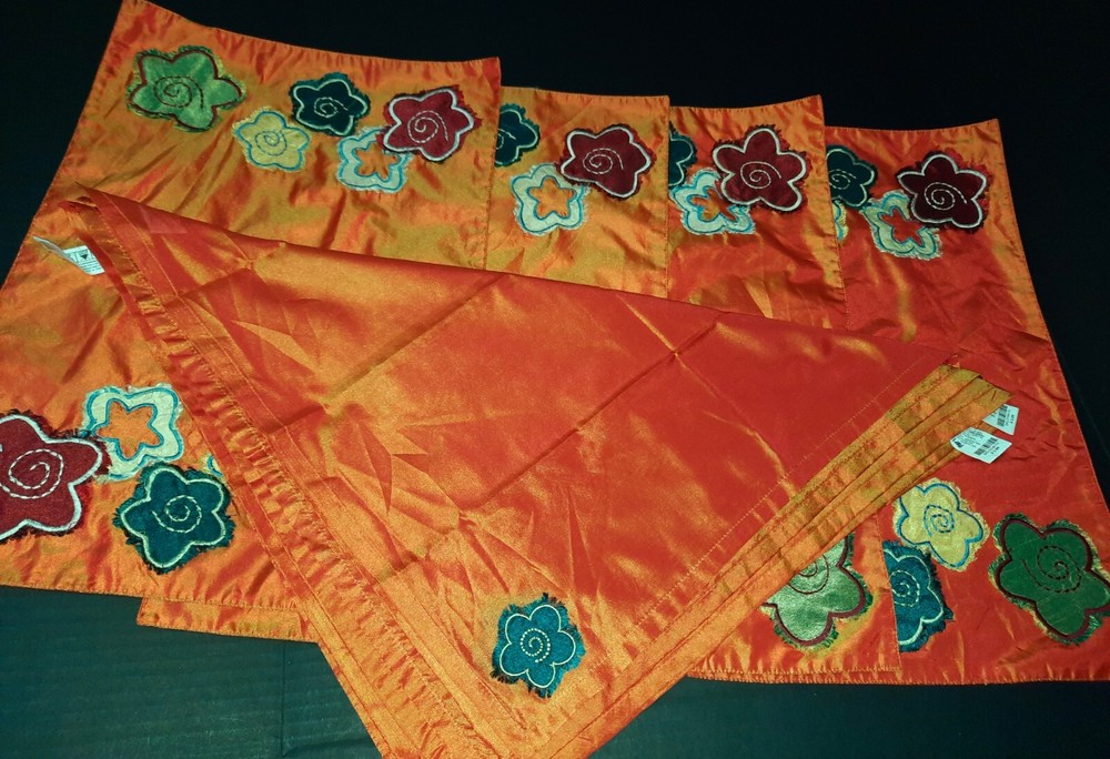 Pier One Imports Placemats/napkins. You get four placemats and four matching napkins. Tags say pier one imports. Iridescent orange with flowers....