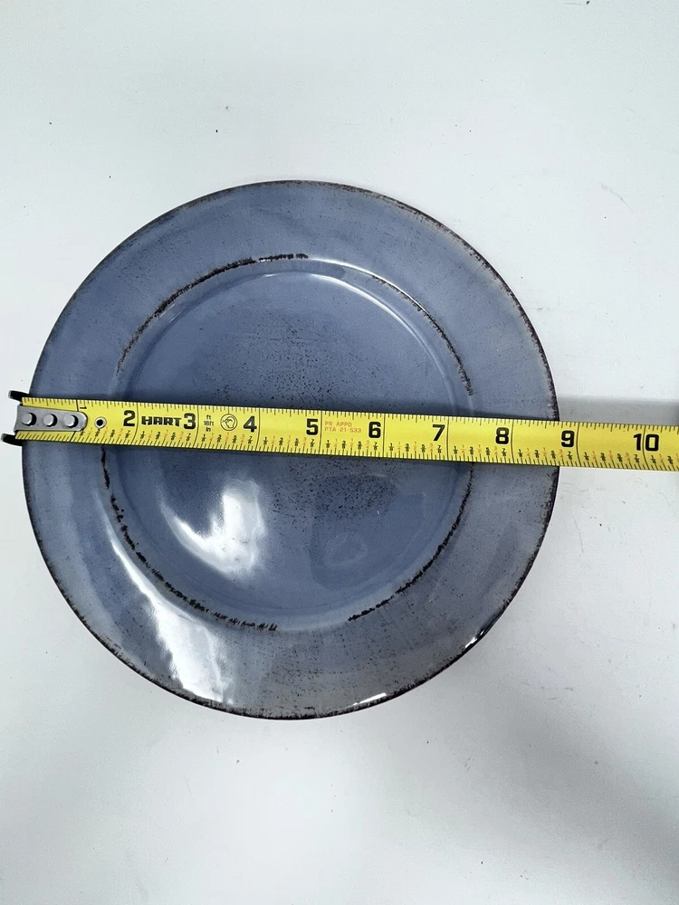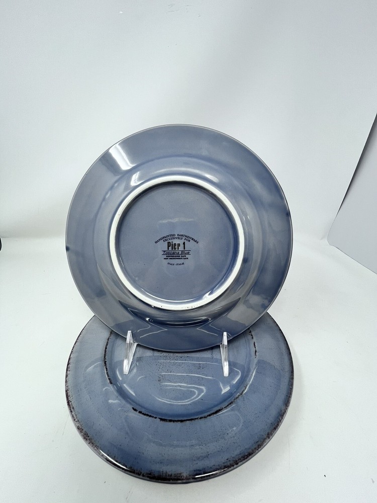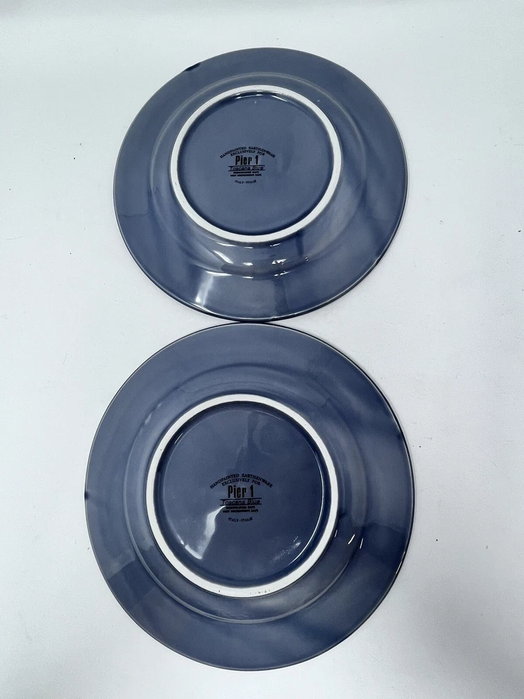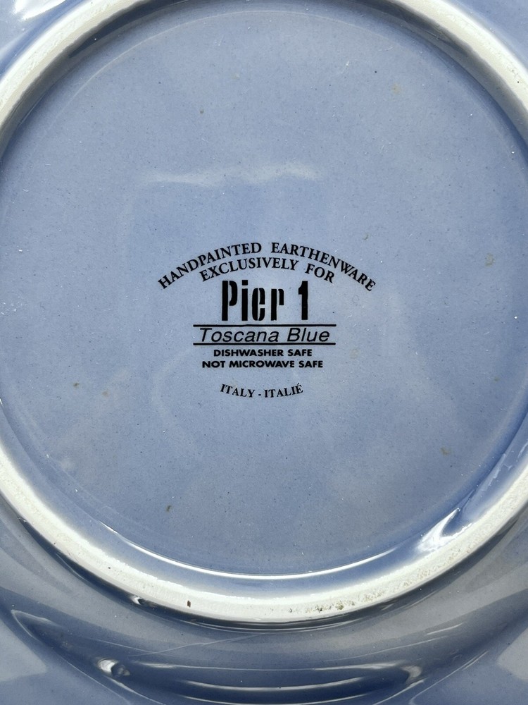 This beautiful Pier One Toscana salad dessert plate is the perfect addition to any table setting. Made in Italy from high-quality stoneware, this 8.75-inch round plate features a stunning blue color and a glossy finish. The plate is dishwasher safe, making it easy to clean and maintain. The Toscana pattern adds a touch of elegance to any occasion, whether it's a casual family dinner or a formal event. The plate is part of a set of one and is an original, contemporary creation from Pier 1. With its earthy production style and printed backstamp, this plate is a must-have for any collector or lover of Italian pottery. Vintage items may have flaws in glazing or minor crazing due to age. All are in great condition with no chips or cracks. Please check out my other listings for coordinating item. Price is per piece or set as described.