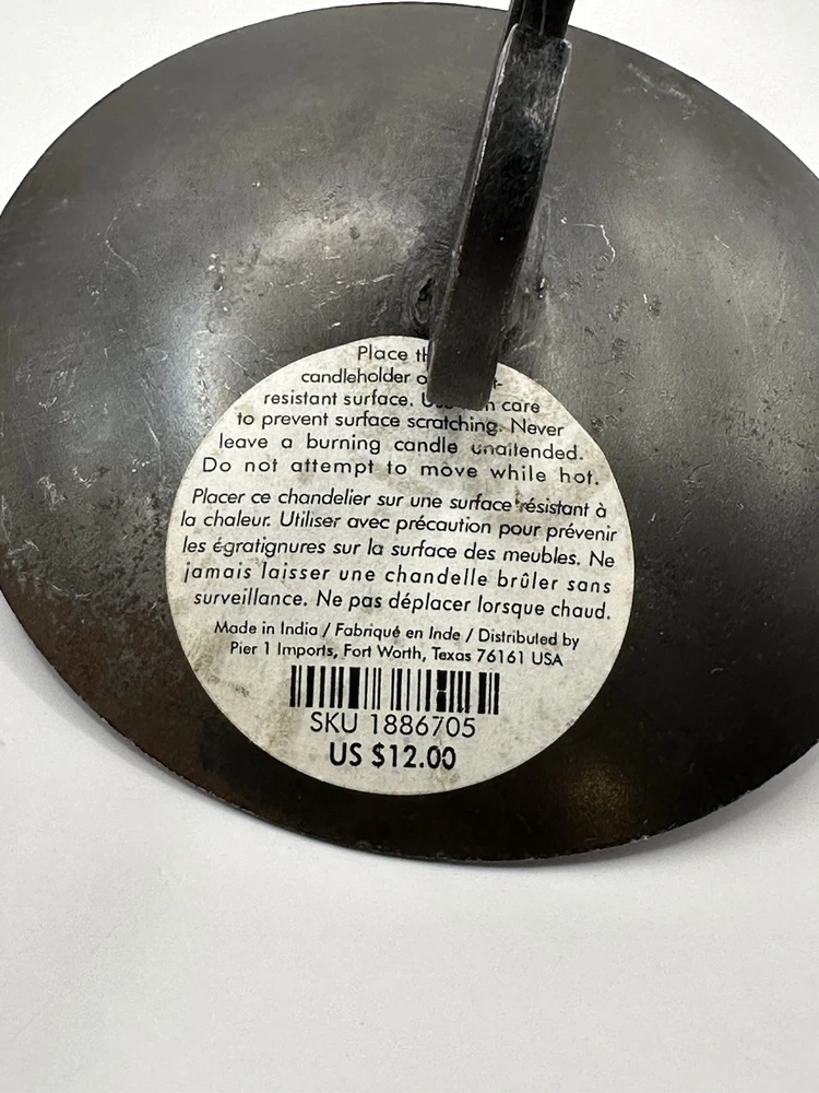 Pier One wrought iron candle stick pair - scroll design