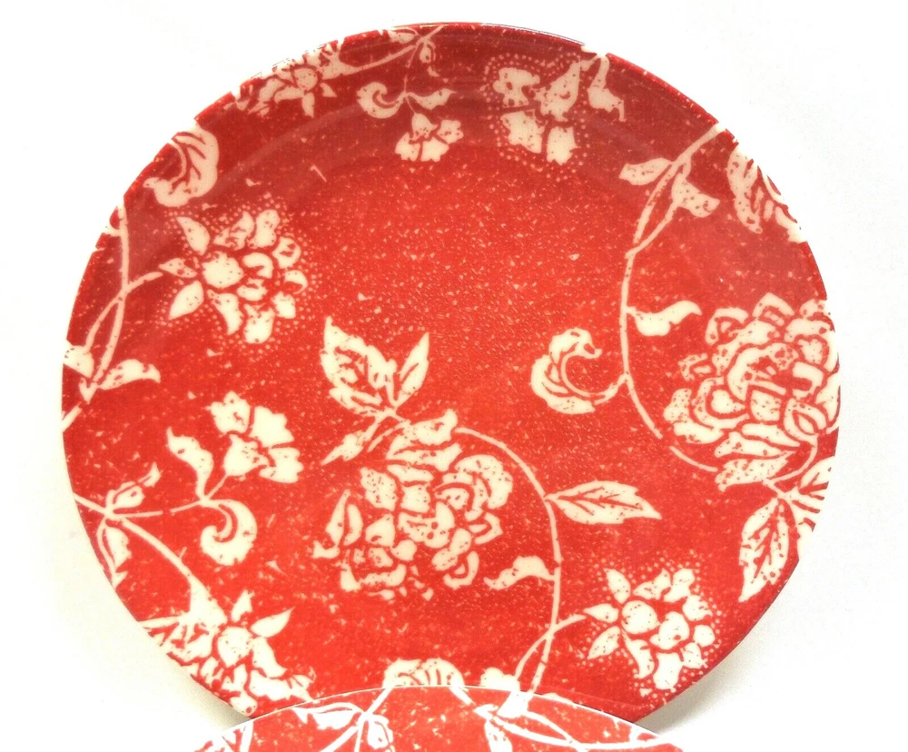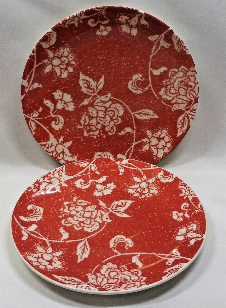 A beautiful set of 2 salad plates by Pier1. The pattern manufactured in 2008 is called Batik Red and features a red and white floral in a coupe design. They measure 8 1/4" and are dishwasher and microwave safe. Made in Brazil these plates are in excellent used condition with some crazing and minor utensil marks. 6/13/19 M #14