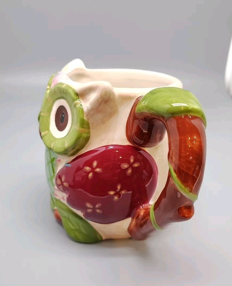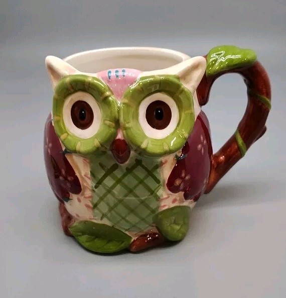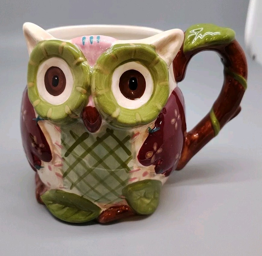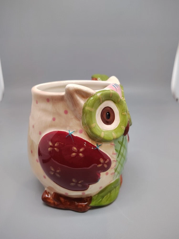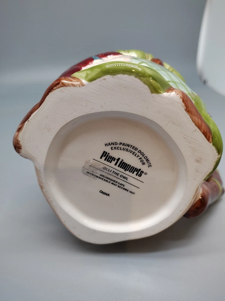 Add some whimsy to your morning routine with the Pier 1 Imports Olli the Owl Mug. This charming 16 oz. dolomite mug features a hand-painted, contemporary 3D design of an owl, making it a unique addition to any kitchen. Perfect for hot or cold beverages, this mug is both fun and functional. Celebrate all occasions with this unisex adult mug, made in China between 2010 and 2019. This original piece is not a custom bundle and has not been modified. It is a great collectible for any animal or dinosaur themed parties. The mug is large and sturdy, making it perfect for a single serving of your favorite beverage.