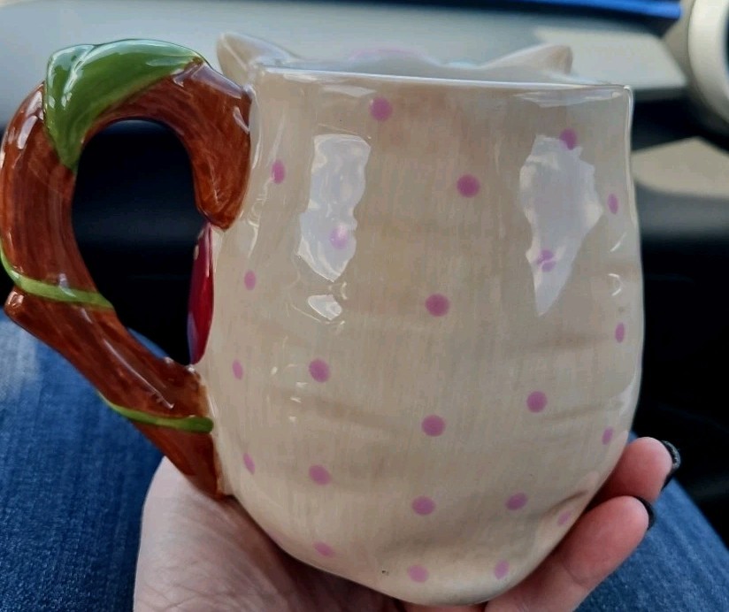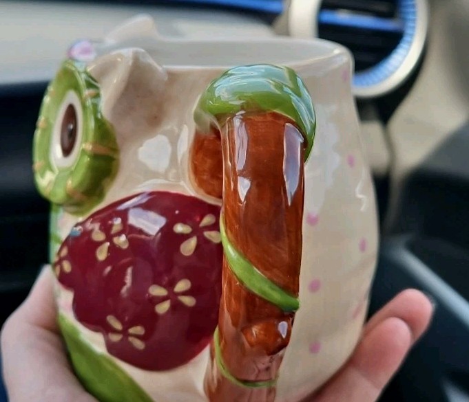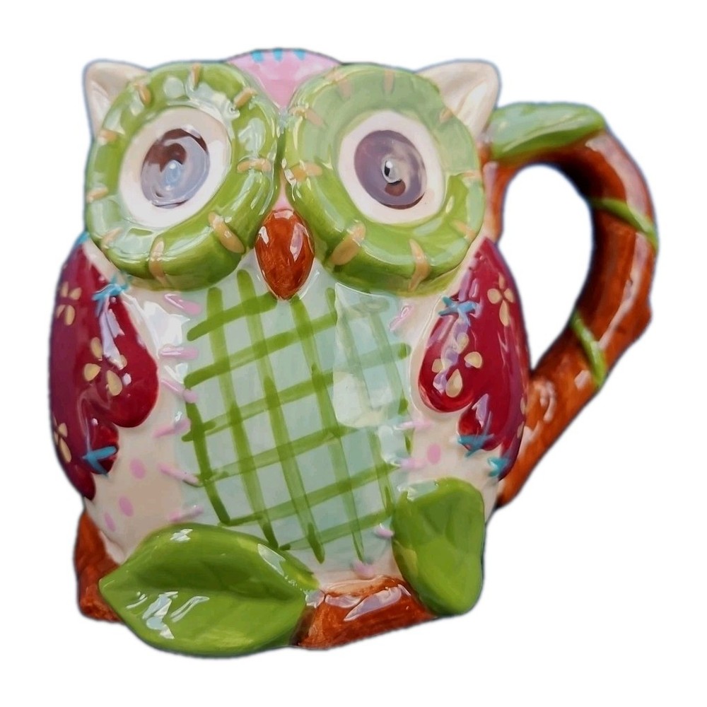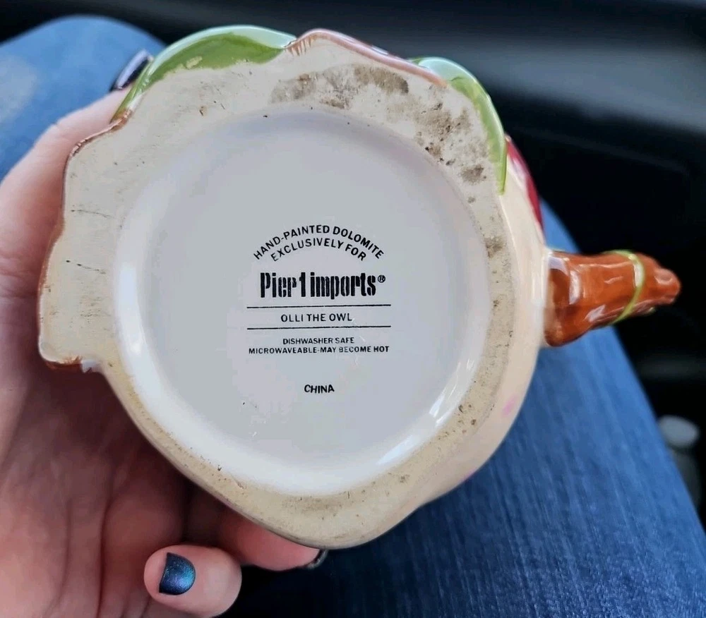 The Pier1 Imports Olli The Owl Large 3D Hand-Painted Mug is a stylish and unique coffee mug featuring a round shape with a large capacity of 16 oz. Hand-painted with a contemporary design of an owl, this mug is suitable for both hot and cold beverages. Made of Dolomite, this dishwasher-safe mug is perfect for all occasions and is sure to add a touch of kitschy owl theme to your kitchen or home decor. Hand-painted with original craftsmanship by Pier 1 Imports, this collectible item is a must-have for owl lovers and those who appreciate 3D designs. Note: There is some scuff marks on the bottom of the mug only. (see in pictures) Lovely, mug! 🦉