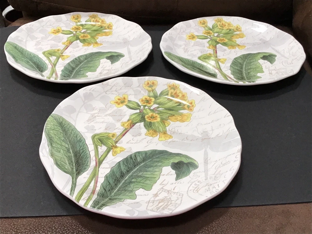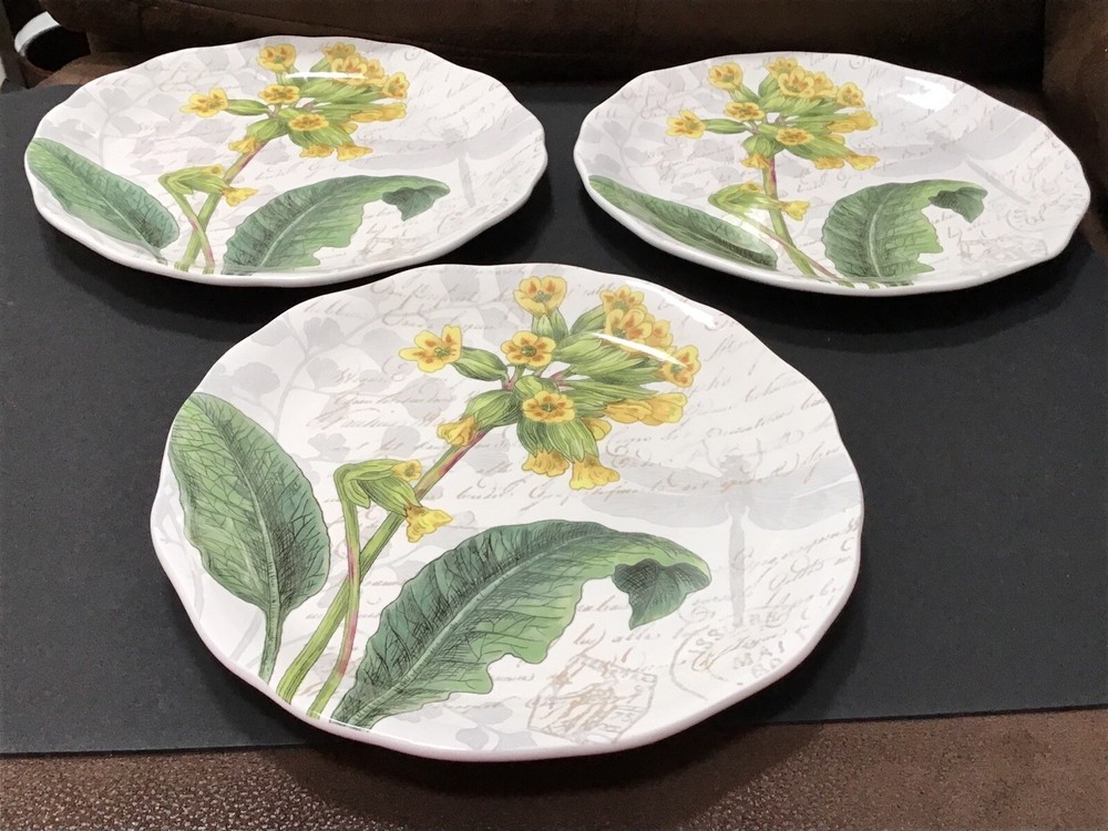 Pier1 Imports Set Of 3 Floral Salad Plates Discontinued Earthenware 9”....