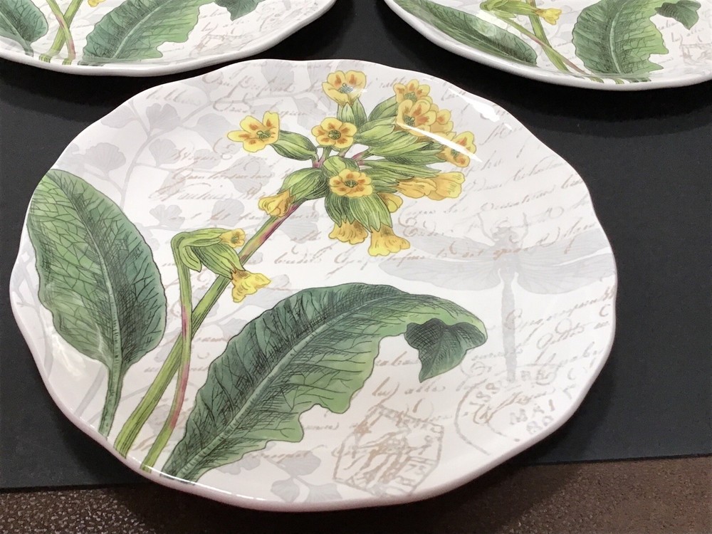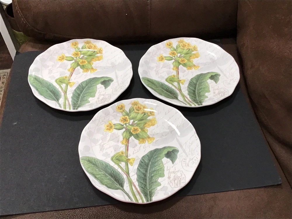 Pier1 Imports Set Of 3 Floral Salad Plates Discontinued Earthenware 9”.