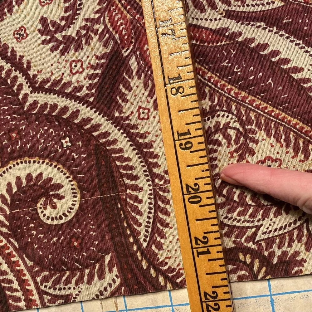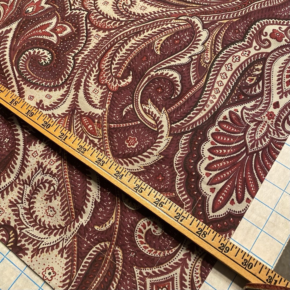 Pillow shams, set of 2, burgundy and tan paisley, Mainstays. Standard size, pocket style. Inside measures 25 x 19 3/4. Outside measurement 29 x 23 3/4”. 60 cotton 40 poly. Made in the USA. Machine wash.