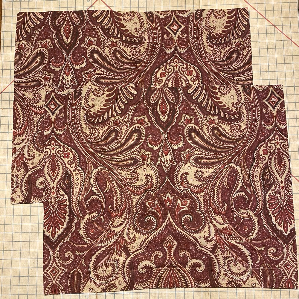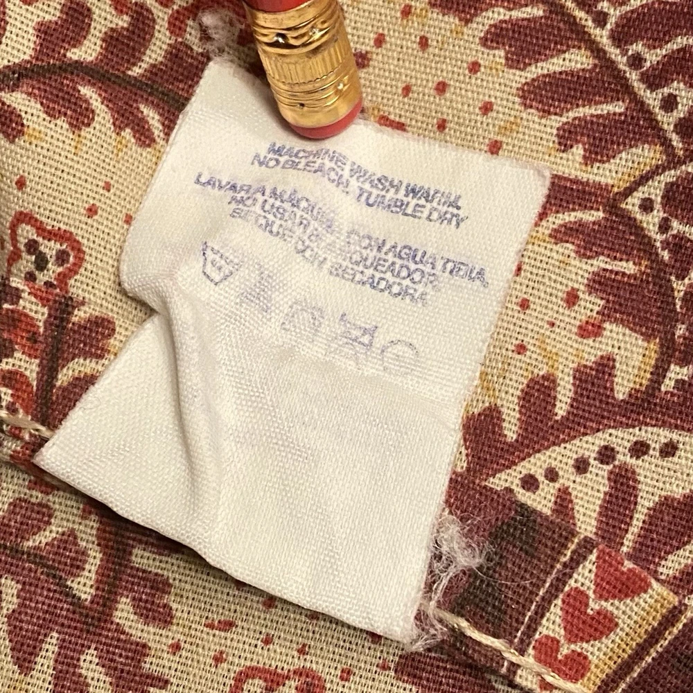 Pillow shams, set of 2, burgundy and tan paisley, Mainstays. Standard size, pocket style. Inside measures 25 x 19 3/4. Outside measurement 29 x 23 3/4”. 60 cotton 40 poly. Made in the USA. Machine was...
