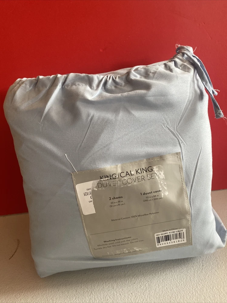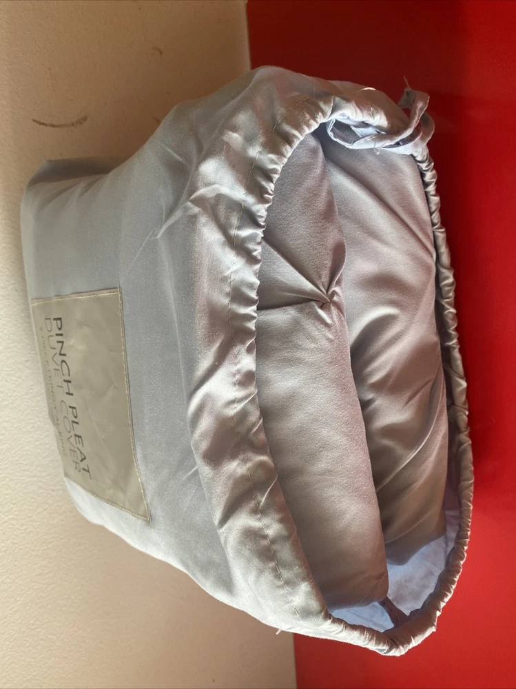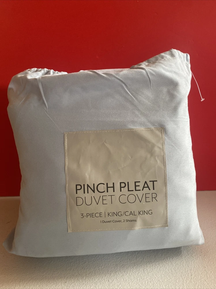 Pinch Pleat Pintuck Duvet Cover 3 pc King, Light Blue. Item has been refolded therefore it might have some wrinkles. New no tairs no stains no rips.