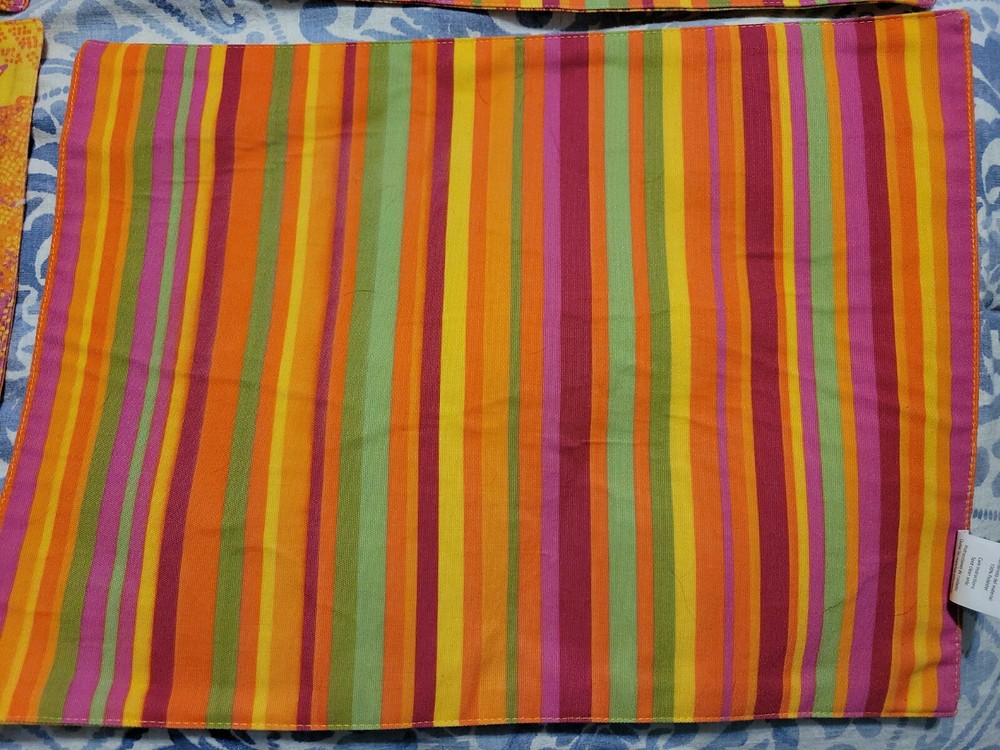 4 nice bright colored red orange cotton fabric place mats by mainstay pineapple and stripes pre owned clean condition....