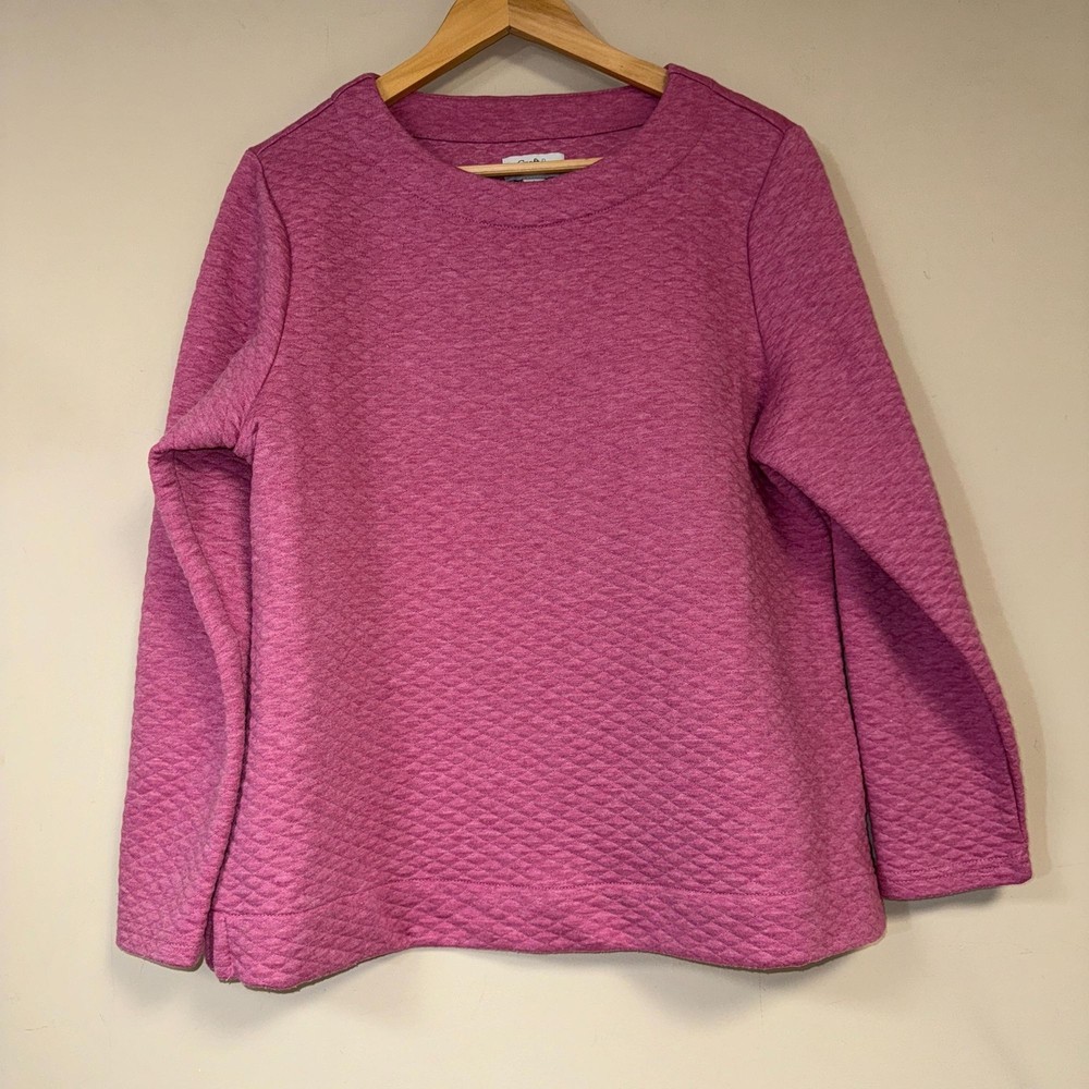 Croft & Barrow Quilted Scoopneck Pink Sweatshirt Womens L Long Sleeve Cozy A great loose fitting, comfortable sweatshirt to add to your wardrobe. Comfortable and versatile, perfect for everyday. Women's size Large - Approximate flat measurements: Armpit to armpit: 22” Shoulder to hem: 26” EUC - Excellent used condition - no known flaws ~Bundle for discount offers including shipping. ~I offer same day shipping whenever possible. Everyday, basic, classic, comfortable, workwear, casual, long sleeve, cozy, spring