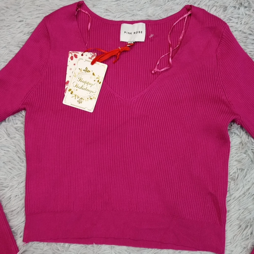 Pink Rose Shirt Girls XL Pink V Neck Ribbed Cozy Comfort Casual New New with tags. Please review photos for measurements and condition. Item will be shipped within one business day. We ship items daily Monday-Friday. * Product color may vary slightly due to photographic lighting or your monitor settings.