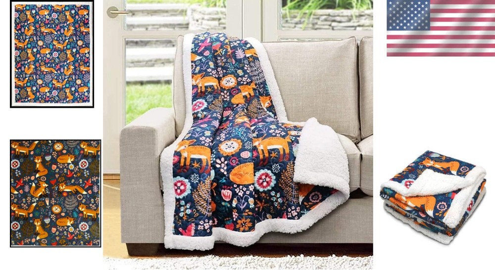 Pixie Fox Kids Blanket - Reversible Sherpa Throw 50” x 60” for Cozy Comfort ‹ › ‹ › ‹ › ‹ › ‹ › ‹ › ‹ › ‹ › Pixie Fox Kids Blanket - Reversible Sherpa Throw Dimensions: 50” x 60” Add a playful touch to your child's sanctuary with our Pixie Fox Reversible Sherpa Throw Blanket . Adorned with cheerful foxes dancing amongst colorful blooms, this delightful blanket captures the essence of joyful playfulness, making it an enchanting addition to any space. Features: Soft and Cozy: Crafted from 100% polyester, this throw blanket boasts a plush microfiber front coupled with a cozy sherpa reverse, ensuring warmth and comfort. Perfect Size: Measuring 50 inches wide by 60 inches long, it is perfectly sized for snuggling up on the couch, layering on your child's bed, or cozy adventures together. Versatile Use: This enchanting blanket is not only a perfect gift for children but also doubles as a delightful pet blanket, ideal for cuddly companions from kittens to puppies. Effortless Care: Designed for convenience, simply machine wash on a gentle cycle with cold water and tumble dry low for easy maintenance. Why Choose the Pixie Fox Blanket? This reversible throw blanket is not just a functional item; it is a whimsical design element that adds character to your child's bedroom or playroom. Whether it's used as a layering piece on beds or as their favorite cozy companion during family movie nights, this blanket promises to wrap them in a warm embrace reminiscent of a soft towel fresh from the dryer. At the heart of our brand lies a commitment to crafting beautiful home decor that inspires. Founded and led by women, our luxury-for-less designs ensure your space reflects personal style while being accessible. Choose the Pixie Fox Reversible Sherpa Throw Blanket for a perfect blend of style, comfort, and nostalgia. Shipping Free & Fast Shipping - We offer free shipping to most of the USA with a normal delivery time of 3-7 days. However, due to the current situation, additional delivery time (up to 3 weeks) may be required for some items. Alternative Carriers - We may use alternative carriers (e.g. USPS, FedEx, UPS, etc.) to ensure your package arrives safely and on time. Due to the use of multiple carriers, we are unable to provide a tracking number automatically. Handling Time - Orders are processed and shipped within 1-2 business days of receiving cleared payment. Shipping Restrictions - Shipping to Alaska, Hawaii, Puerto Rico, Guam, and other US territories may incur shipping charges or delivery restrictions. Please contact us before ordering, or your order can be refunded/cancelled. State Restrictions - There may be restrictions based on your state of purchase. For example, certain items may not be shipped to California due to state regulations. Contact for Tracking Updates - If you require tracking updates or have any concerns about the delivery of your order, please feel free to contact us, and we will be happy to assist you. Return 30-Day Hassle-Free Returns - We want you to be completely satisfied with your purchase. If you are not, you can return the item within 30 days of receiving it for a full refund or exchange. Easy Return Process - To start a return, simply contact us and we will provide you with a prepaid return shipping label and detailed instructions. Restocking Fee - There are no restocking fees for returns. However, the buyer is responsible for return shipping costs if the return is not due to a seller's error. Refund Processing Time - Refunds will be processed within 5 business days of receiving the returned item in its condition. Payment We accept all major credit cards, PayPal, and Apple Pay for your convenience. Your payment information is secure and encrypted to ensure a safe and seamless transaction. Please complete your payment within 3 days of purchase to avoid any delays in shipping. Feedback Your feedback is extremely important to us. We strive to provide the best products and customer service possible. If you are satisfied with your purchase, please take a moment to leave us a positive review. If you have any concerns or issues with your order, please contact us before leaving negative feedback. We are committed to resolving any problems and ensuring your satisfaction. Contact Us If you have any questions or concerns, please feel free to out to our customer support team. You can contact us through the eBay messaging system. We are available Monday to Friday, 9:00 am to 5:00 pm EST, and we will do our best to respond to your inquiry within 24 hours. Buy it now and enjoy a pleasant shopping experience! MPN: Toddler_Throw_Blanket Size: 60" x 50" Model: Toddler Throw Blanket Unit Quantity: 1 Features: Reversible,Quilted,Colorful Print,Whimsical Design,Soft,Fluffy,Heavyweight,Warm Type: Throw Blanket Theme: Fox Color: Navy Material: 100% Polyester Gender: Unisex To Fit: Toddler Bed Unit Type: Unit