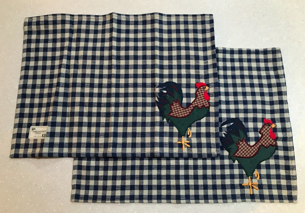 Two Hand Loomed Placemats Rooster Farmcore Country Decor by Park Imports & Design Kitchen Cotton Park Imports & Designs Hand Loomed 2 placemats 18 inches x 13 inches approximately Blue Beige Rooster C...