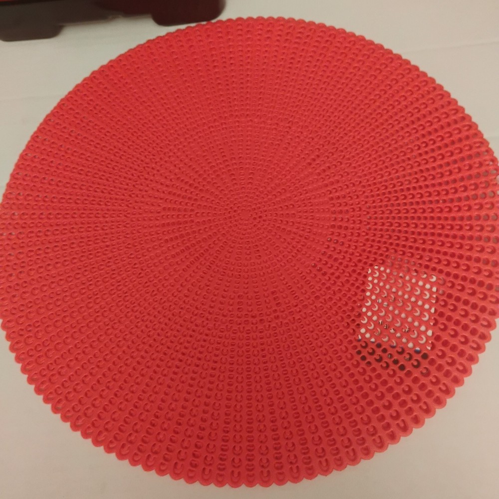 Mainstay Round Placemats Trim Table Mats 4 (Red) 16" Add a touch of elegance to your dining table with these Mainstay Round Placemats. The blue woven pattern adds a pop of color and the 100% polyester material ensures durability. Measuring 16 inches in length and width, these placemats are perfect for any occasion, whether it's a casual family dinner or a formal event. The round shape and trim design make them a versatile addition to any table setting. Made by euille and crafted in China, these placemats are a must-have for any home.