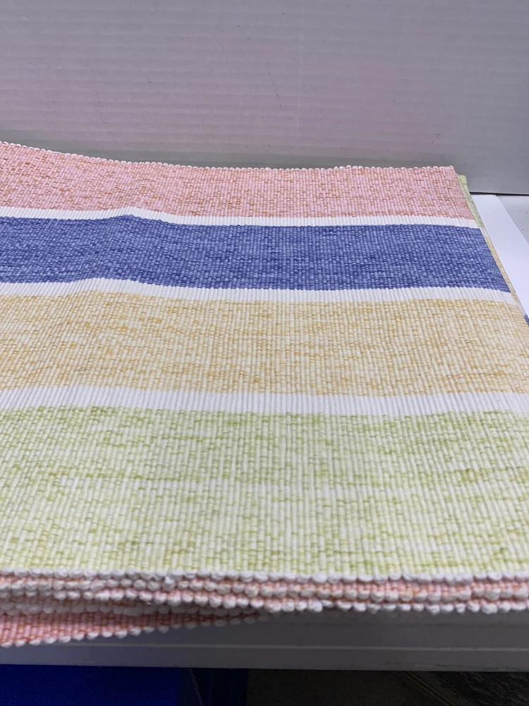 These placemats instantly brightened my dining table! The pastel stripes are so cheerful and the cotton feels durable yet soft. Love having a full set for hosting - they make every meal feel special.