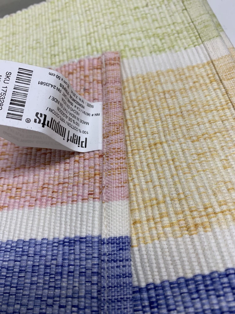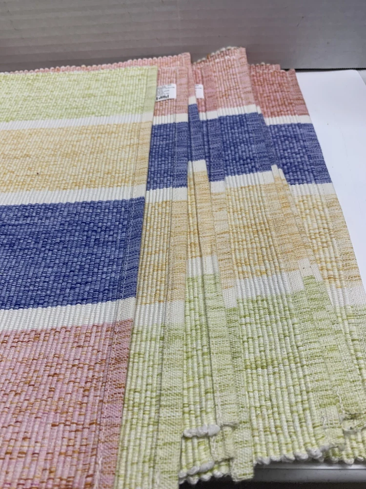 Add a pop of color to your dining table with this set of 11 Pier 1 Imports placemats. Made of 100% cotton in a vibrant multi-color striped pattern, these rectangular placemats are perfect for any occa...