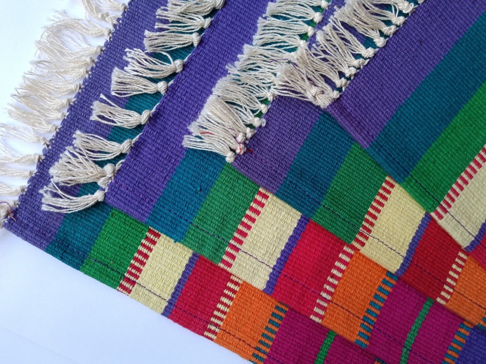 The set includes 4 rectangular placemats featuring a woven multicolor design with white fringe inspired by Southwest Baja and Sonoma Carnival themes. Made of cotton, these placemats are perfect for adding a touch of Bohemian fashion or a fun circus vibe to your dining table. With a rainbow of colors and a nod to Mexican and diner aesthetics, these placemats bring a vibrant and eclectic feel to any kitchen or dining room setting. Very good condition. Bright rich color. Measures 21" x 13.5". This is an approximate measurements and may vary a little in size. Sold as is all sales final. No returns. Thank you!