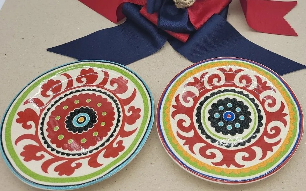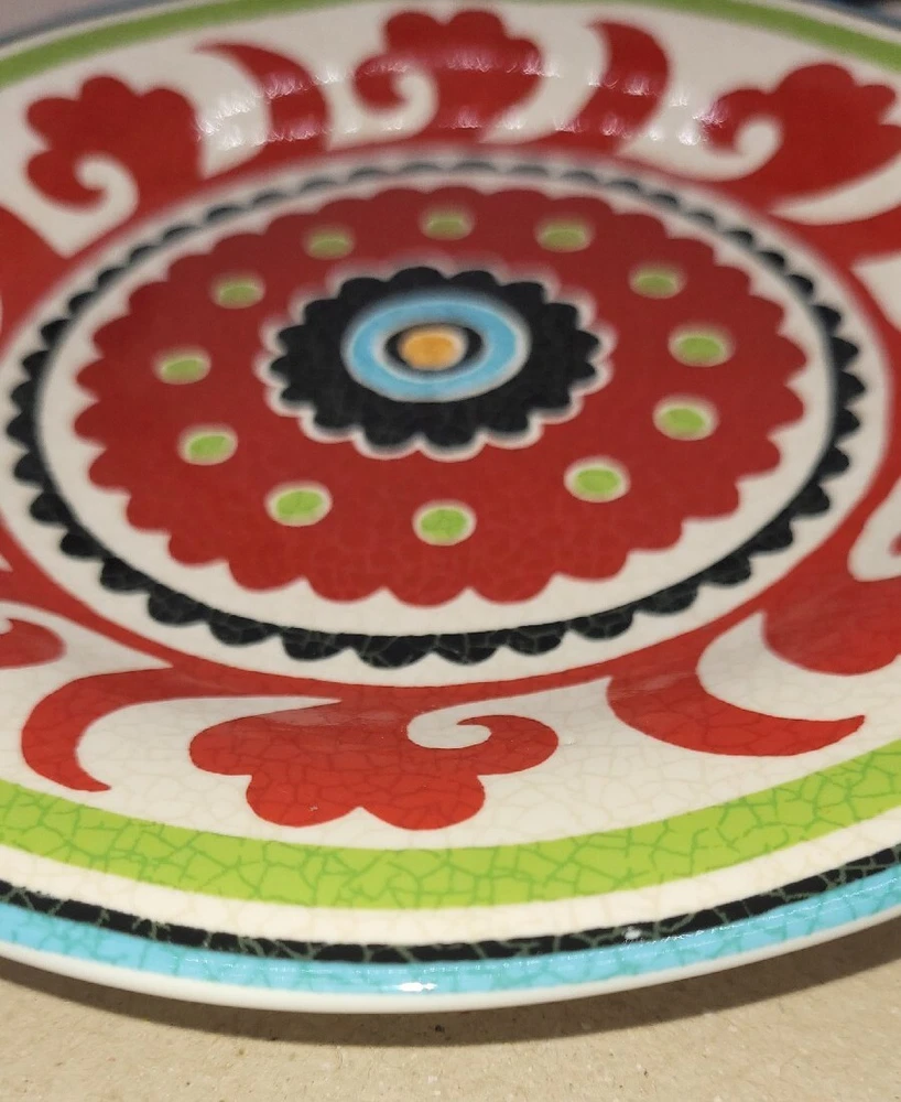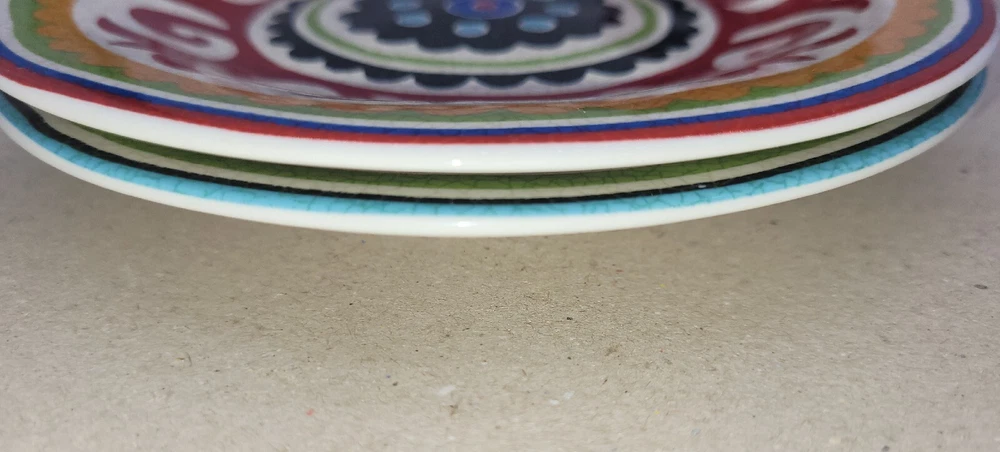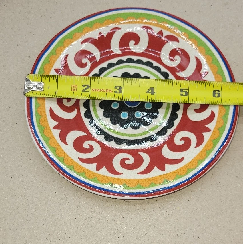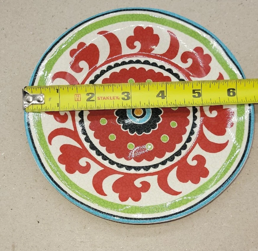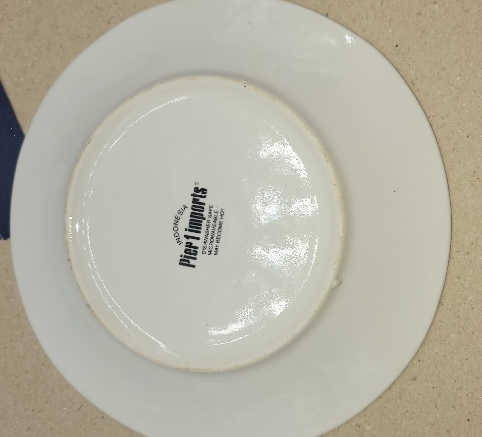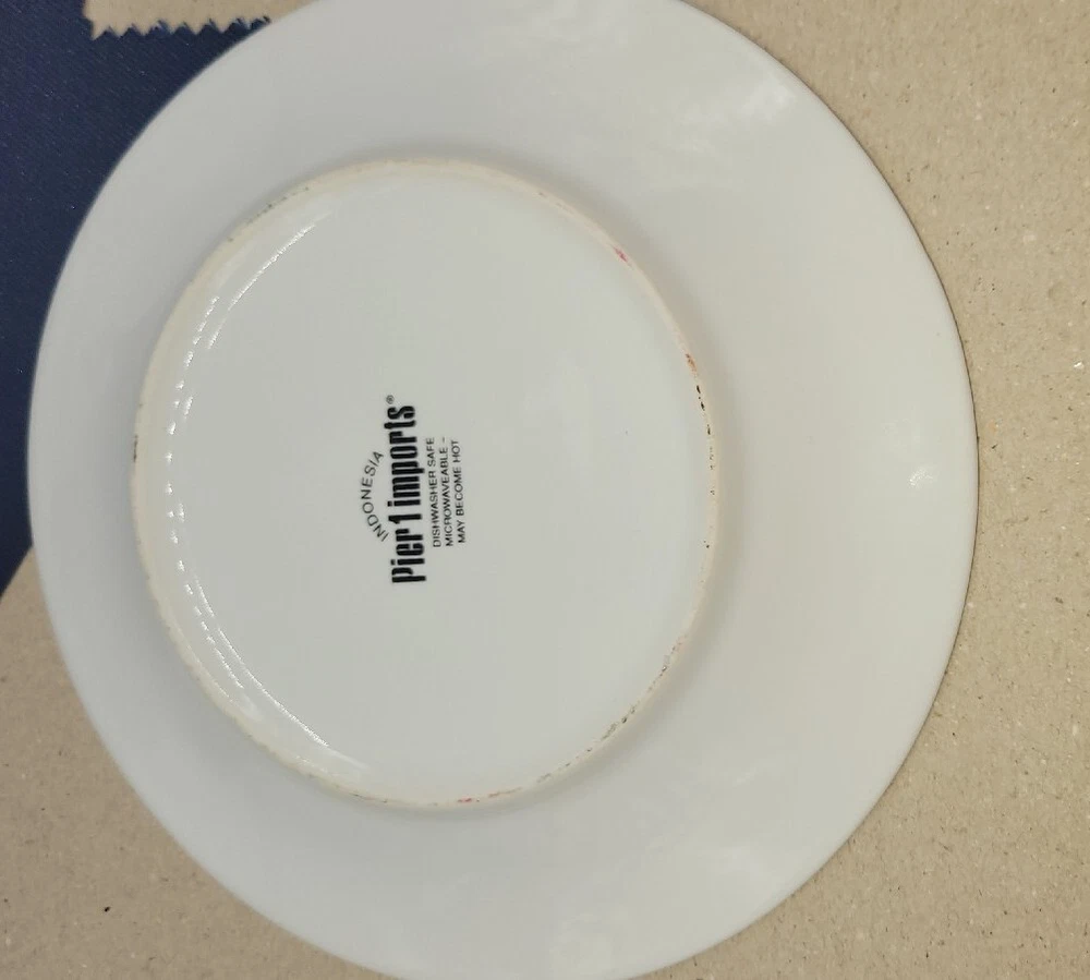 Pier 1 Imports Appetizer, Bread Dessert Plates Set of 2 Indonesia. Set is pre-owned Shows signs of prior usage,shelve and storage wear with surface blemishes on the bottom. Both plates have a tiny dent like spot on the top. One has a overspill on the backside. They both appear to have come from manufacturer because neither Show signs of discoloration on or around the indents and overspill is attached. Please see pictures 7,8,9 for close-ups. Please view all photos as part of description. If you would like additional photos or have any questions please contact me. Decorative bow used for illustration purposes only and is not included with the purchase. All items will be shipped the most cost-efficient way via USPS, FedEx, or UPS. I reuse shipping supplies as much as possible and I only ship to the confirmed eBay address and am not responsible for undeliverable addresses. Buyer pays shipping calculated by location via eBay shipping tool. Buyer pays return shipping costs. International, Alaska, Hawaii and US Protectorate shipping available upon request. OVERNIGHT and 2ND DAY AIR available at buyers expense. I am not an authorized dealer of this product and any warranty included with the product may not be honored by the manufacturer.Any new, sealed, unopened, or items altered in any way are not eligible for return. Feedback My goal is to make every customer 100% satisfied with their order. When you receive your order take a minute to leave me positive feedback at eBay. Please do not simply leave a neutral/negative feedback if you had an issue with an item. If you are not satisfied, please let me know before leaving feedback. Please send me a message through eBay and let me know how I can earn your satisfaction! B21