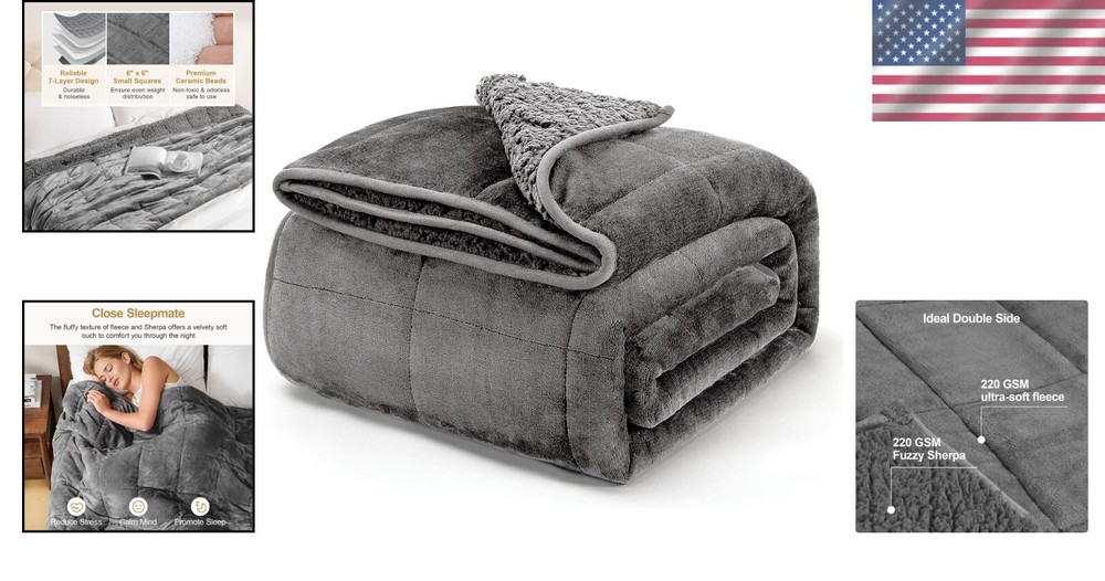 Plush Grey Weighted Blanket 15lbs - Cozy Sherpa & Fleece for Adult Relaxation < class="slides"> ‹ › ‹ › ‹ › ‹ › ‹ › ‹ › ‹ › ‹ › ‹ › ‹ › Plush Grey Weighted Blanket 15lbs -Cozy Sherpa & Fleece for Adult Relaxation Features: Tactile softness from plush Sherpa top paired with fluffy fleece reverse for a luxurious feel. Perfect for lounging while watching TV, taking naps, or enjoying outdoor leisure time. This Sherpa weighted blanket makes a thoughtful gift for friends and family. Weighted blanket provides calming pressure to promote restful sleep. Meticulously crafted with firm polyester fiber layers to securely wrap ceramic beads, preventing leakage. Innovative sewing method ensures even distribution of filling for a cuddle-like experience. Sized at 60" x 80", perfect for personal use on a full or queen size bed. Benefits: Enhances relaxation and comfort during leisure activities. Encourages restful and quality sleep through soothing touch. No harmful chemicals used in the materials for peace of mind. Easy maintenance with hand wash and spot cleaning options. Customer-first approach with dedicated after-sales support. Why choose our Plush Grey Weighted Blanket? If restful sleep has been a challenge, our Plush Grey Weighted Blanket is here to help you achieve tranquility and calm. Weighing 15lbs, it is ideal for adults between 130-180lbs, offering the optimal weight-to-body ratio for relaxation. Crafted from luxurious materials like soft Sherpa and cozy fleece, envelop yourself in this indulgent blanket and enjoy moments of serenity. With meticulous craftsmanship ensuring bead distribution and safety, this blanket promises a cuddle-like embrace for ultimate comfort. Transform your sleep experiences—choose a life of comfort and quality rest with our Plush Grey Weighted Blanket. Order yours today to start nurturing your well-being! Shipping Free & Fast Shipping - We offer free shipping to most of the USA with a normal delivery time of 3-7 days. However, due to the current situation, additional delivery time (up to 3 weeks) may be required for some items. Alternative Carriers - We may use alternative carriers (e.g. USPS, FedEx, UPS, etc.) to ensure your package arrives safely and on time. Due to the use of multiple carriers, we are unable to provide a tracking number automatically. Handling Time - Orders are processed and shipped within 1-2 business days of receiving cleared payment. Shipping Restrictions - Shipping to Alaska, Hawaii, Puerto Rico, Guam, and other US territories may incur shipping charges or delivery restrictions. Please contact us before ordering, or your order can be refunded/cancelled. State Restrictions - There may be restrictions based on your state of purchase. For example, certain items may not be shipped to California due to state regulations. Contact for Tracking Updates - If you require tracking updates or have any concerns about the delivery of your order, please feel free to contact us, and we will be happy to assist you. Return 30-Day Hassle-Free Returns - We want you to be completely satisfied with your purchase. If you are not, you can return the item within 30 days of receiving it for a full refund or exchange. Easy Return Process - To start a return, simply contact us and we will provide you with a prepaid return shipping label and detailed instructions. Restocking Fee - There are no restocking fees for returns. However, the buyer is responsible for return shipping costs if the return is not due to a seller's error. Refund Processing Time - Refunds will be processed within 5 business days of receiving the returned item in its condition. Payment We accept all major credit cards, PayPal, and Apple Pay for your convenience. Your payment information is secure and encrypted to ensure a safe and seamless transaction. Please complete your payment within 3 days of purchase to avoid any delays in shipping. Feedback Your feedback is extremely important to us. We strive to provide the best products and customer service possible. If you are satisfied with your purchase, please take a moment to leave us a positive review. If you have any concerns or issues with your order, please contact us before leaving negative feedback. We are committed to resolving any problems and ensuring your satisfaction. Contact Us If you have any questions or concerns, please feel free to out to our customer support team. You can contact us through the eBay messaging system. We are available Monday to Friday, 9:00 am to 5:00 pm EST, and we will do our best to respond to your inquiry within 24 hours. Buy it now and enjoy a pleasant shopping experience! Unit Quantity: 15 Material: Fleece,Polyester,Sherpa Fleece,Sherpa Features: Weighted,Durable Theme: Plain Care Instructions: Hand Wash,Hand Wash Only Department: Adults Room: Bedroom Size: Twin Type: Weighted Blanket Color: Gray Pattern: Solid Style: Modern Shape: Rectangular Insulation: All Seasons Closure Type: No Closure GSM (Grams per Square Meter): Below 150 Thread Count: 200 or Less Unit Type: lb