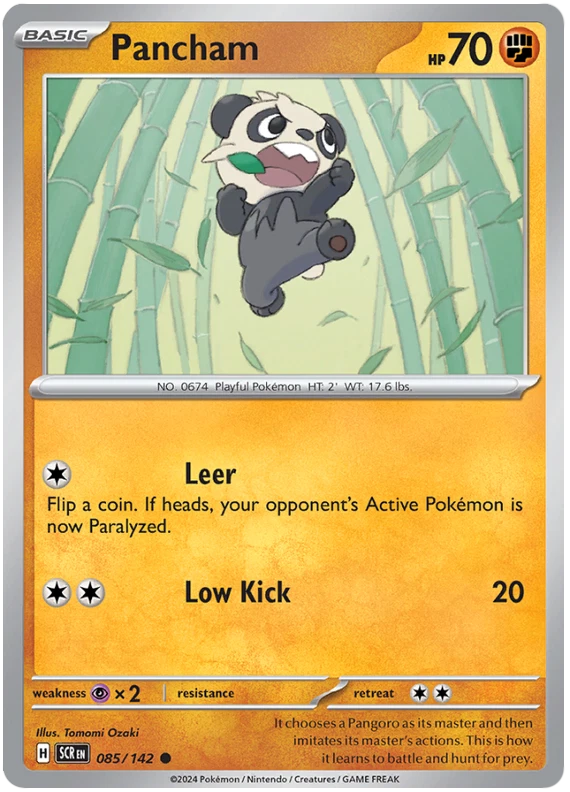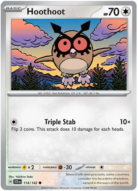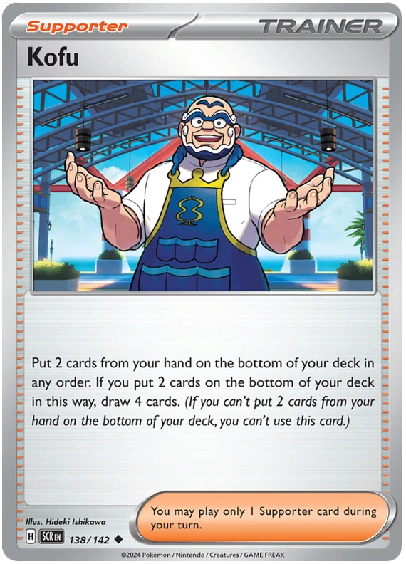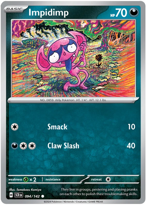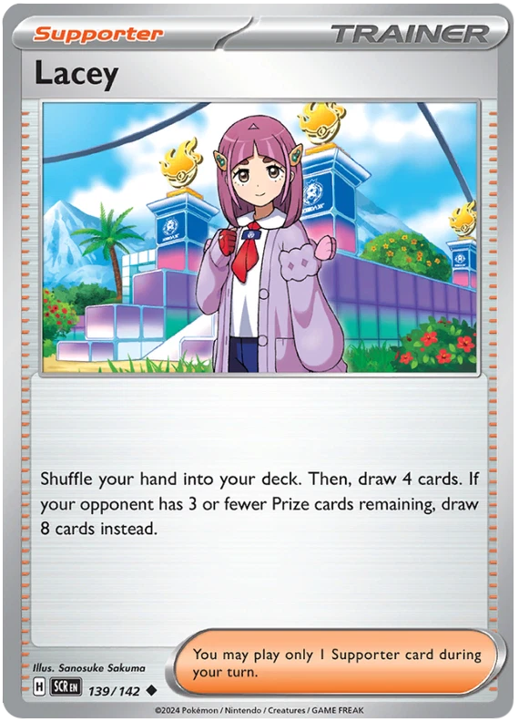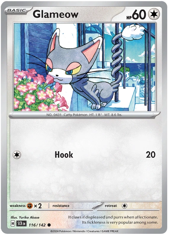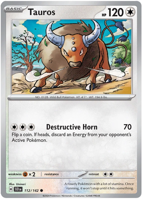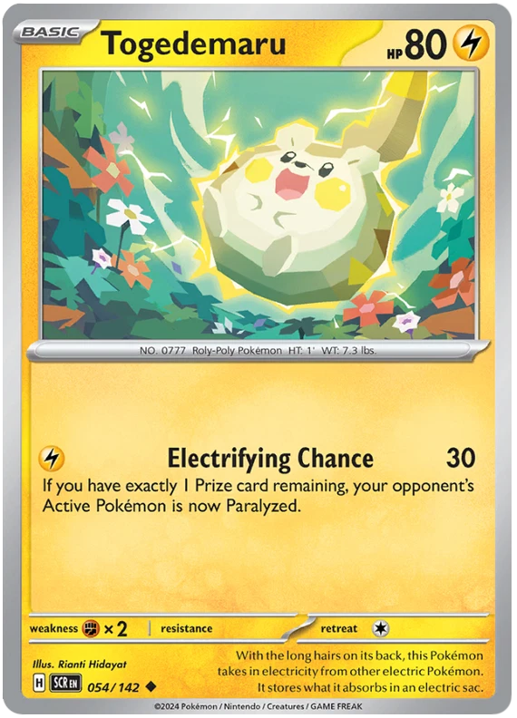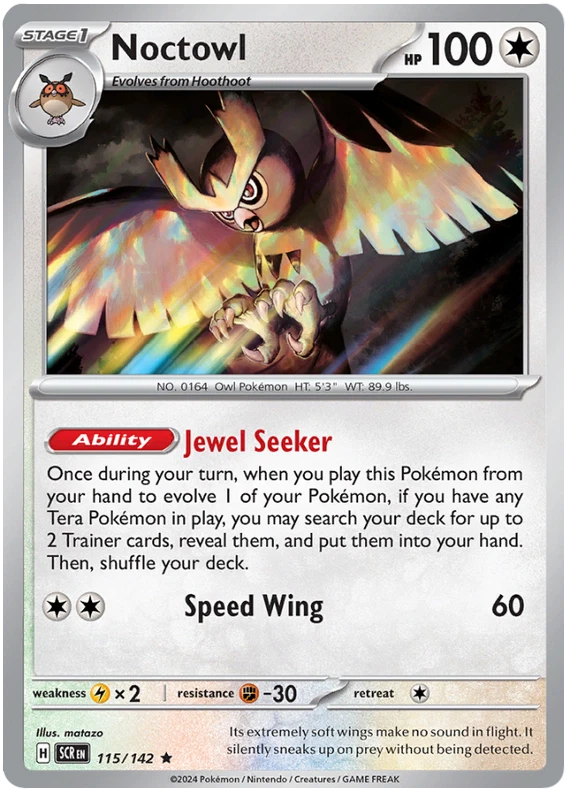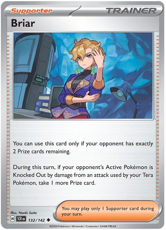 The product is a Pokémon TCG card from the Stellar Crown series, where the buyer can select specific cards to complete their collection. The cards are in English and are manufactured by The Pokémon Company. These are Pokémon cards, and they are not autographed. This product is ideal for collectors looking to fill gaps in their set or add specific cards to their collection. Cards are stock photos. Cards have NOT been played and are pack fresh. Shipped in PWE unless higher shipping cost selected at checkout and then will be shipped in bubble mailer.