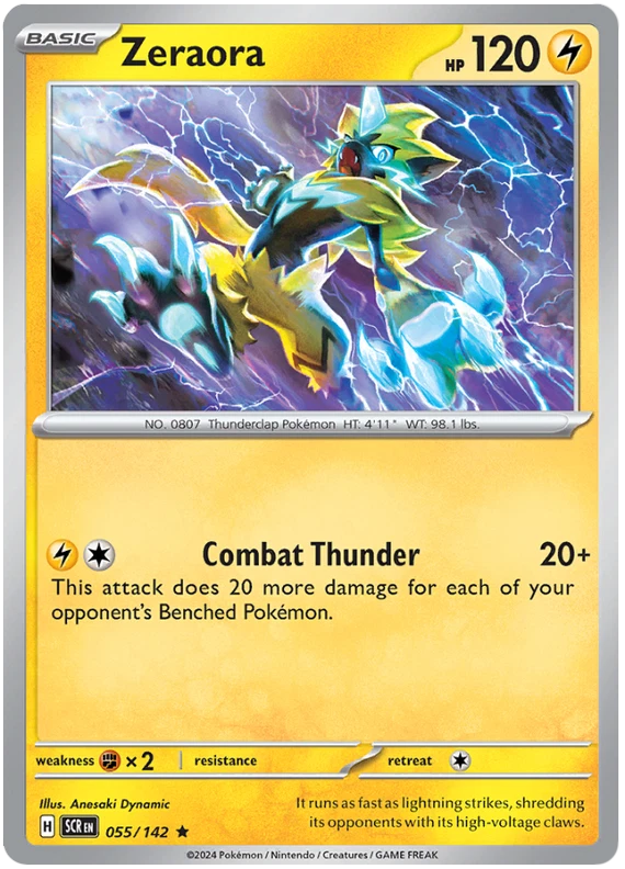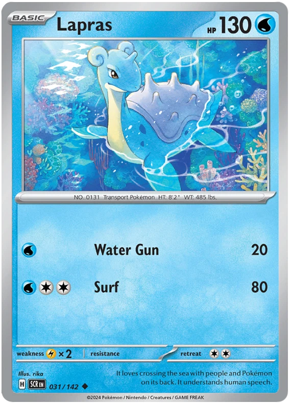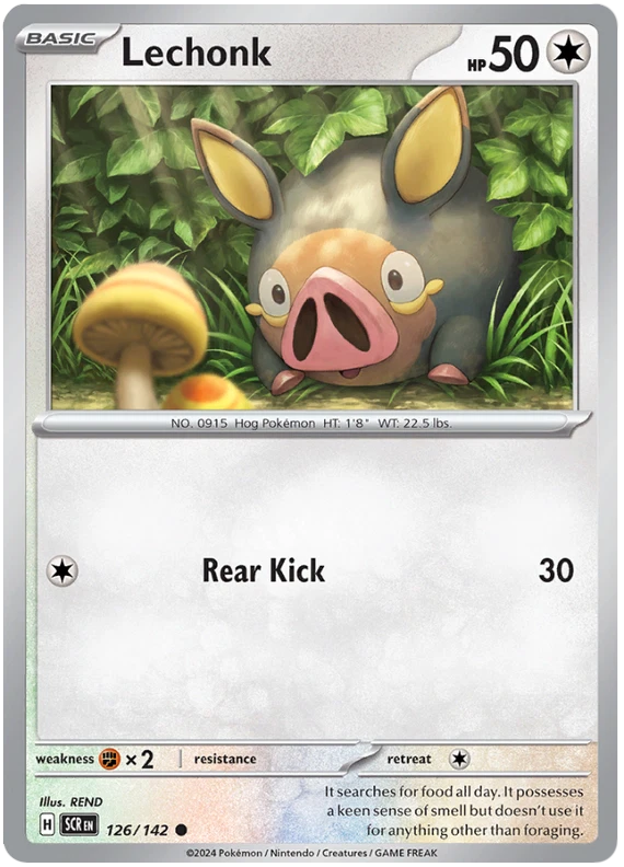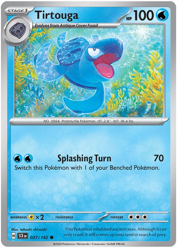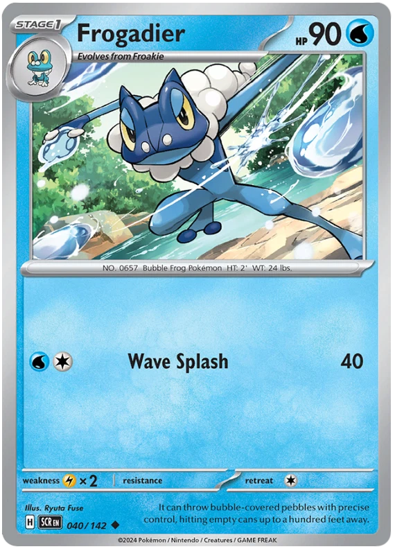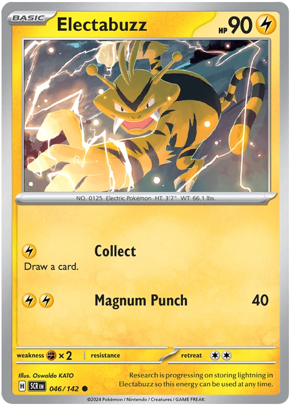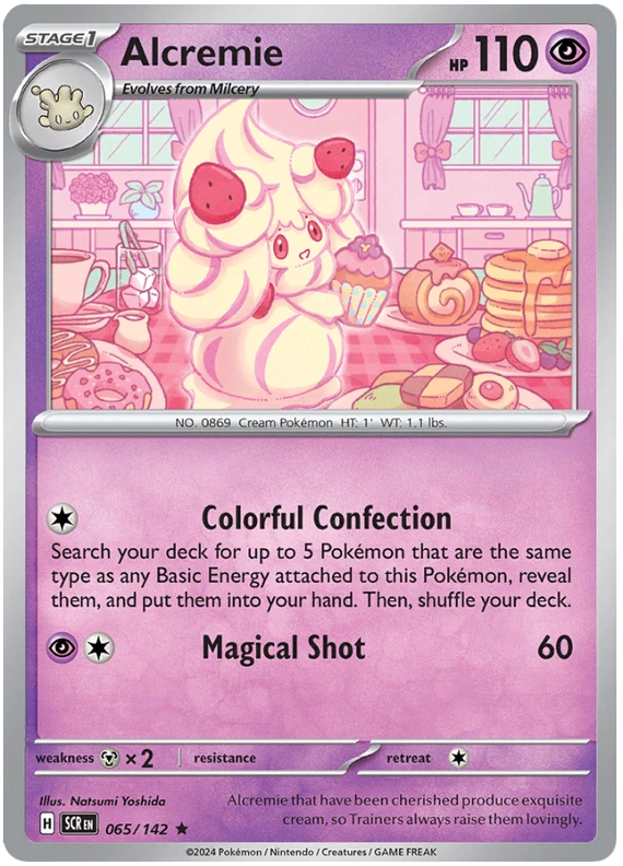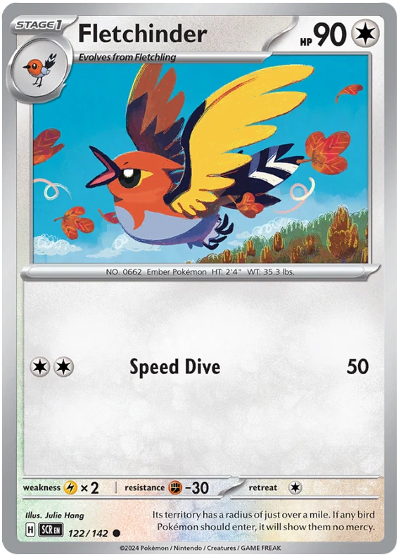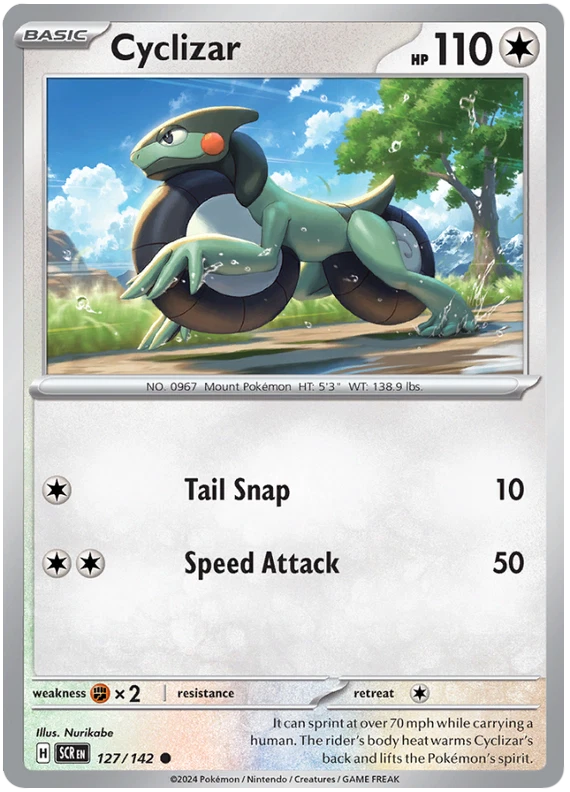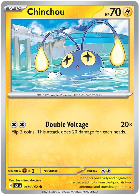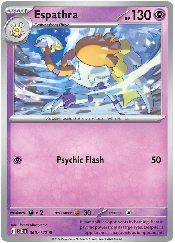 The product is a Pokémon TCG card from the Stellar Crown series, where the buyer can select specific cards to complete their collection. The cards are in English and are manufactured by The Pokémon Company. These are Pokémon cards, and they are not autographed. This product is ideal for collectors looking to fill gaps in their set or add specific cards to their collection. Cards are stock photos. Cards have NOT been played and are pack fresh. Shipped in PWE unless higher shipping cost selected at checkout and then will be shipped in bubble mailer.