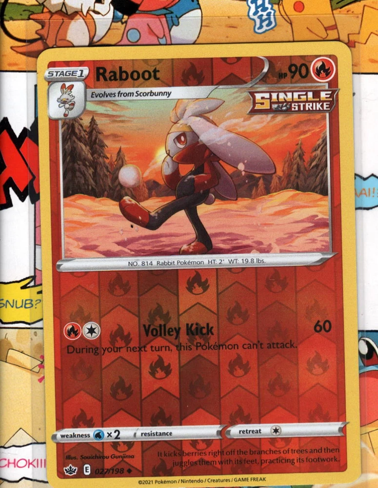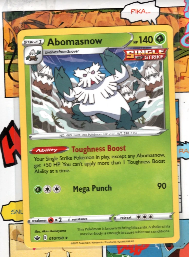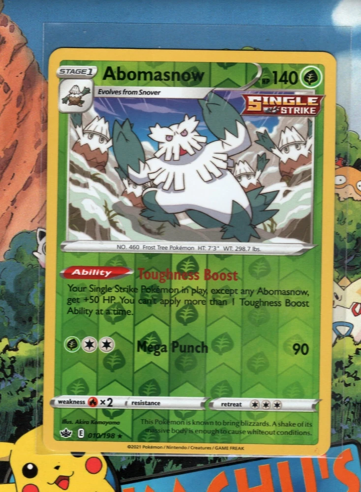 Pokemon TCG Pick Your Card Chilling Reign Holo & Rare Complete your Master Set Bookmark this listing as I will continuously update it for new stocks. Card condition are NM/M unless otherwise stated. Pictures are my stock photo. Buy Multiple save on Shipping!!! Cards will be in penny sleeve + top loader. Maximum 2 Top loader per stamp (to meet USPS allowable limit). Rest of the cards will be penny sleeve and place in between top loader. US Shipping rate: Option 1 (lost card non refundable - your risk!) 1- 4 cards = $1 Stamp Ebay Envelop with Tracking Option 2 (Refundable) Unlimited cards = $3.75 via USPS first class International shipping rate: Option 1 (lost card non refundable - your risk!) 1-4 cards = $2 Stamp non trackable Option 2 (Refundable) Unlimited cards = $15 via Ebay International Delivery trackable Please contact me for any inquiries on my items. Thank you for your consideration.