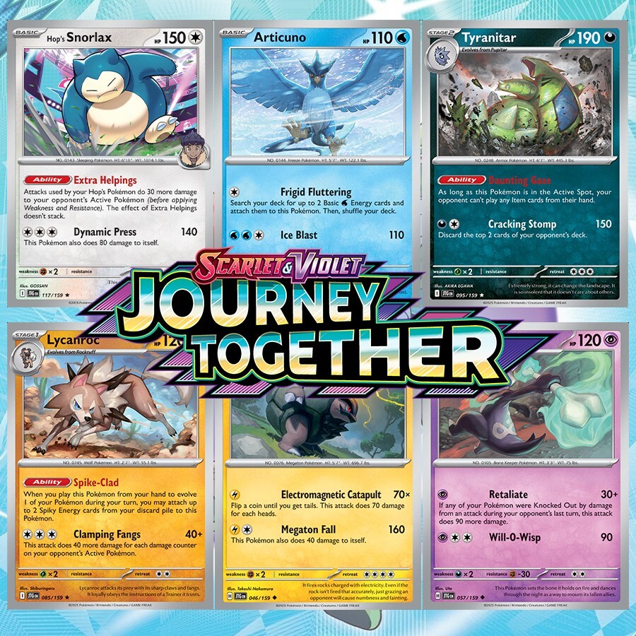 CHOOSE YOUR CARDS to complete your Journey Together Set . All cards are NM (Near Mint) condition. Due to our large card inventory and frequent restocks, we are using stock images for all NM (Near Mint) but we are 100% positive that you will receive the condition as expected. If you would like to see images of the exact card, please send a message and we will provide photos within 24 hours. Condition Table: NM = Near Mint Cards in Near Mint (NM) condition show minimal wear from shuffling, play or handling and can have a nearly unmarked surface, crisp corners and unblemished edges outside of a few slight flaws. A Near Mint card may have slight edge wear or a scratch or three, but overall look nearly unplayed with no major defects. LP = Lightly Played Cards in Lightly Played (LP) condition may have minor border or corner wear, scuffs or scratches. There are no major defects such as grime, bends or issues with the structural integrity of the card. Noticeable imperfections are okay, but none should be too severe or at too high a volume. MP = Moderately Played Cards in Moderately Played (MP) condition can have border wear, corner wear, scratching or scuffing, creases or whitening or any combination of moderate examples of these flaws. HP = Heavily Played Cards in Heavily Played (HP) condition show a major amount of wear. Cards can show a variety of moderate imperfections along with creasing, whitening and bends. Heavily Played cards can also have flaws that impact the integrity of the card, but the card can still be sleeve playable. DM = Damaged Damaged cards show wear or imperfections beyond the standards for other conditions. Cards in Damaged condition can also exhibit an imperfection that may make the card illegal for tournament play, even in a sleeve. Cards in Damaged condition may have major border wear, corner wear, scratching or scuffing, as well as folds, creases, tears or other damage that impacts the structural integrity of the card. Shipping: All single cards under $19.99 (or combined orders up to $50) will ship via eBay Standard Envelope for Trading Cards (will let us ship all items for FREE with LIMITED tracking. Buyer can choose to upgrade USPS Ground Advantage (3-6 business days) shipping with upgraded tracking for $3.99. All single cards over $19.99 will ship via USPS Ground Advantage . We ship all orders Monday-Saturday cut off time for it being sent the same day is 8:00 AM CST. How are your cards shipped? All cards are individually sleeved in a card saver and team bagged. Our Products: All our products are 100% authentic and Pokémon Official Licensed product. Product is licensed in accordance with trademark and copyright requirements. Buy with Confidence! WhatNot Seller with over 10K+ Sales/3K+ Reviews and over 600+ Sales on TCGPlayer. USA Seller and ships fast!
