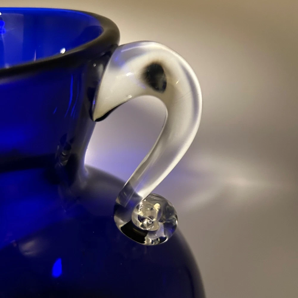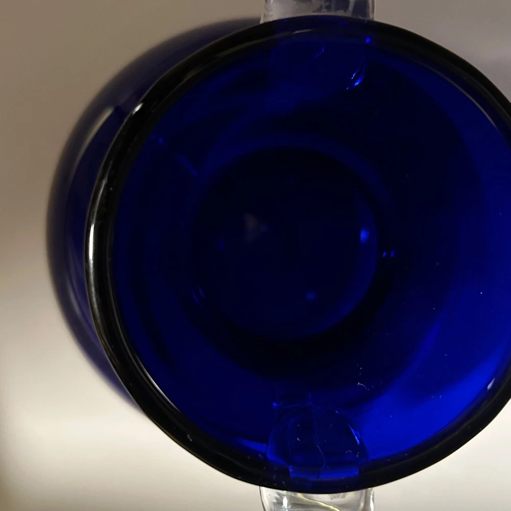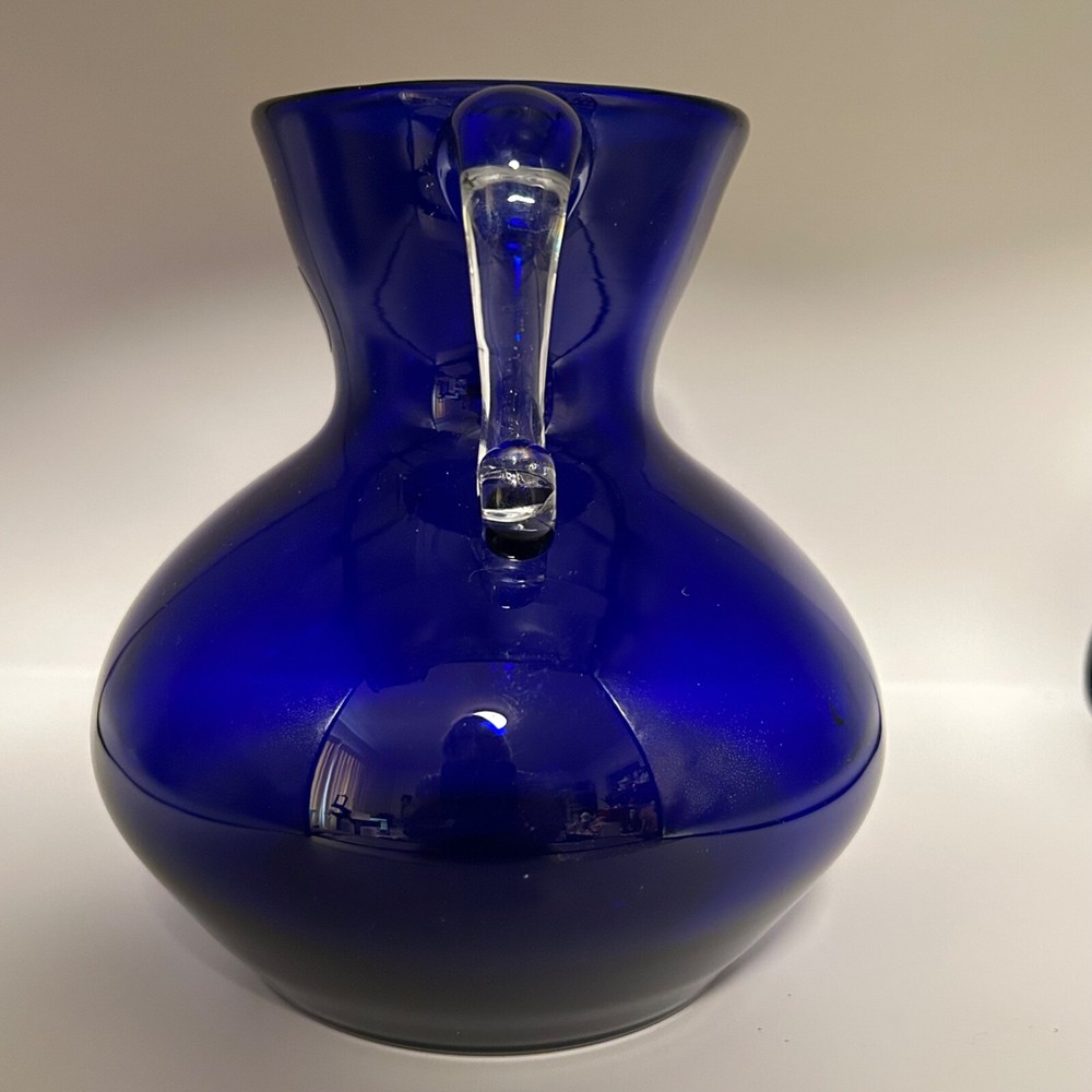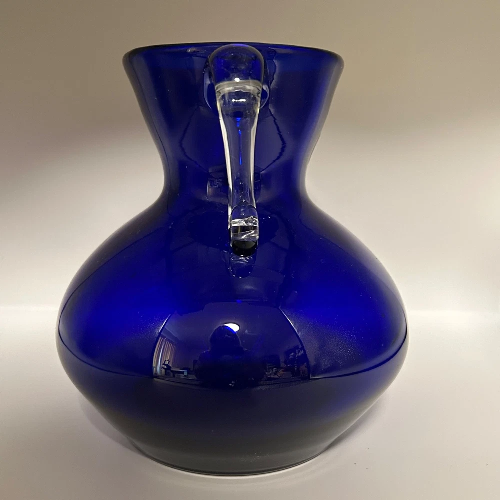 Poland Wanda Imports Hand Blown Cobalt Blue Clear Double Handled Vase Stunning! This is a absolutely elegant, beautiful piece that will surely make a statement in any setting ! The cobalt blue is rich and yummy!