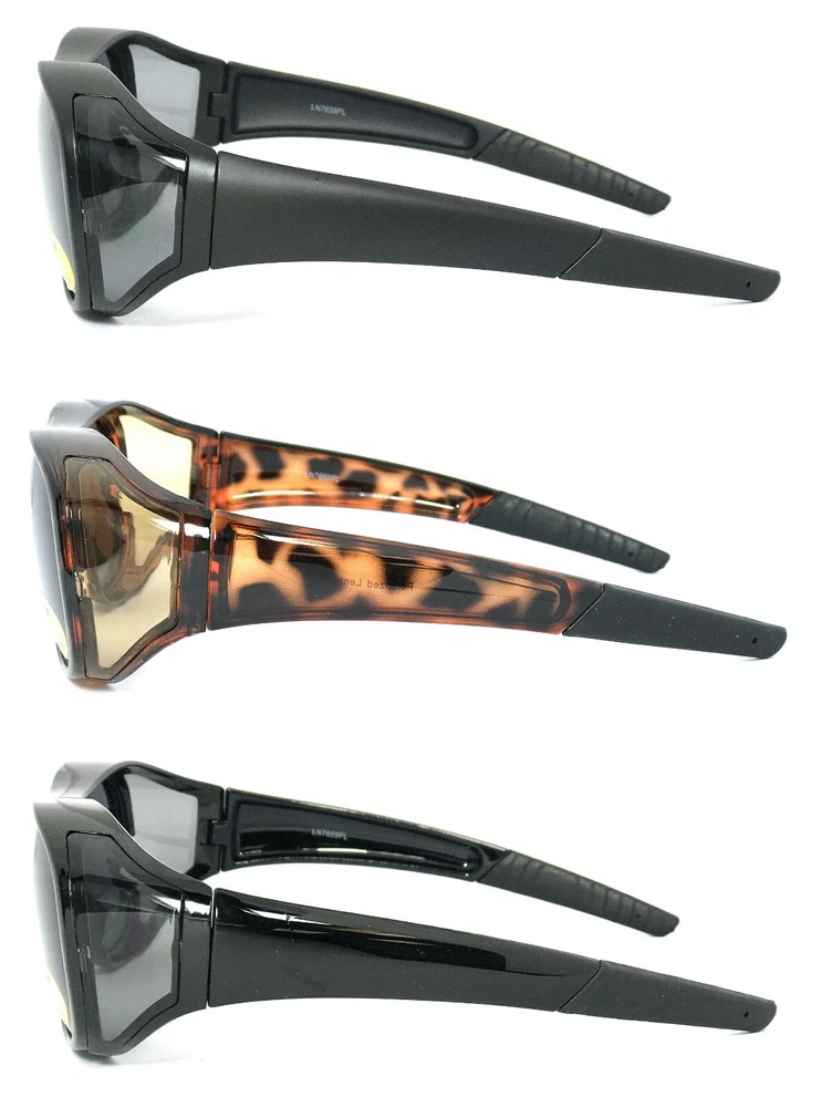 This listing is for Any ONE of the above FIT OVER Sunglasses Polarized Lens for PRESCRIPTION GLASSES Please select your Color & Size in the drop down box above Description: Have you recently found yourself searching for the perfect pair of prescription sunglasses, but dislike the outrageous costs? This polarized sunglasses are designed to fit over your regular glasses or readers so you can enjoy the great outdoors without spending a fortune. The polarized lenses help to reduce glare from passing through the lenses and provides maximum UV protection from harmful ultraviolet rays. Moreover, the sunglasses with the side lens for improved peripheral vision. This Fit Over Sunglasses is ideal for fishing, driving, golfing, skiing and many other outdoor activities. It can be worn by itself as well. Protection: Polarized lens are laminated with tiny vertical stripes that only allow vertically angled light enter the eyes and protects eyes from harmful UV rays. Also gives a clearer view eliminating glare from surfaces. The Sunglasses is exactly what you see on the photos. Shipping: All Glasses are shipped with a Corrugated Box to ensure safe arrival Shipping and Handling for Domestic and International Shipments can be found at the "Shipping and payments" tab Order will be shipped out within 1-2 business days after receiving the firmed payment If the item is lost or damaged, please email us for replacement. It will be replaced under our insurance policy in a fast and efficient manner. Payment: PayPal: We accept Visa, Master, Discover, American Express and E-Check via Paypal in US Dollars, Sterling Pound or Australian Dollars Return Policy: We offers a 30 day money back guarantee on all purchases. Simply return the purchased item within 30 days for a full refund. We are sure you would not want to return this product, but just in case we have our 30 day money back. Customer Satisfaction is our Mission, we will refund all money paid including the postage on any of the purchases. Your Satisfaction is Very Important to Us: Customer Satisfaction is our Primary Goal. Please feel free to contact us for your question before bidding. If you feel your shopping experience with us was anything less than FIVE STAR, please contact us immediately. We appreciate the opportunity to correct any issues you may have before you leave eBay feedback. We strike for FIVE STARS!