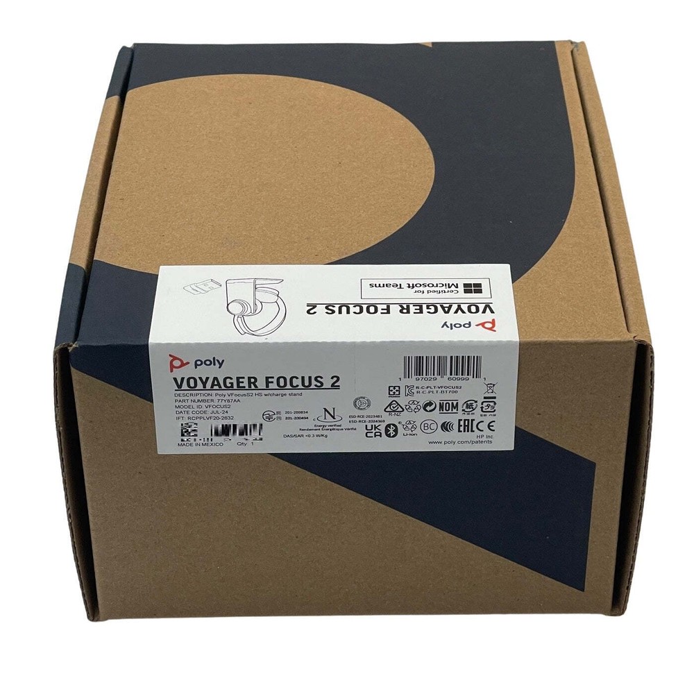 Powered by Frooition Avaya Axtel Cisco Digium Fortinet Grandstream Honeywell HP Jabra Logitech Mitel NEC Panasonic Plantronics Polycom Printers and Scanners Ruckus Sangoma Shoretel Yealink Zebra All Items See our eBay store for more great items >> Shop Categories Avaya Axtel Cisco Digium Fortinet Grandstream Honeywell HP Jabra Logitech Mitel NEC Panasonic Plantronics Polycom Printers and Scanners Ruckus Sangoma Shoretel Yealink Zebra Poly Voyager Focus 2 Bluetooth Headset Teams w/Stand (213727-02, 77Y87AA) New Item Description The Poly Voyager Focus 2 is a premium wireless stereo Bluetooth headset designed to deliver an exceptional audio experience for professionals who demand superior sound quality, comfort, and flexibility in their communication tools. Ideal for use in both office environments and on the go, this headset offers a range of features that cater to the needs of today's dynamic work environments. Condition & Warranty Brand New 1-Year Warranty Features Advanced Noise-Canceling Technology: The Voyager Focus 2 is equipped with hybrid active noise canceling (ANC) technology, which effectively blocks out background noise, allowing you to focus on your calls and work without distractions. The headset also features a three-level ANC setting, giving you the flexibility to adjust the noise cancellation based on your surroundings. Crystal Clear Audio: With its high-quality stereo sound and enhanced digital signal processing (DSP), the headset ensures that both your voice and the voices of those on the other end of the call are clear and natural, even in noisy environments. Comfortable Design: The Voyager Focus 2 is designed with all-day comfort in mind. It features soft, leatherette ear cushions and an adjustable headband that provides a secure fit without causing discomfort, making it ideal for extended use during long meetings or work sessions. Smart Sensor Technology: The headset includes smart sensors that automatically mute your calls when you remove the headset and resume them when you put it back on. Additionally, the headset can automatically answer calls when you put it on, offering a seamless communication experience. Multipoint Connectivity: The Voyager Focus 2 UC supports multipoint connectivity, allowing you to connect to two devices simultaneously. This feature is perfect for professionals who need to switch between calls on their computer and mobile device without missing a beat. Seamless Integration: The headset supports Bluetooth 5.1 connectivity and comes with a USB adapter for easy pairing with your computer or mobile devices. Long Battery Life: With up to 25 hours of talk time and 40 hours of listening time on a single charge, the Voyager Focus 2 ensures that you stay connected throughout your workday without the need to recharge frequently. Intuitive Controls: The headset features on-ear controls for adjusting volume, managing calls, and activating voice assistants, giving you quick and easy access to essential functions. Compatibility Connects to Bluetooth enabled laptop or desktop computers (USB Bluetooth Dongle included for PC?s without Bluetooth) Connects to Bluetooth enabled smartphones, tables, smart watches Connects to Bluetooth enabled Office Phones Certified for Microsoft Teams Package Contents Poly Voyager Focus 2 Headset - Teams Charging Stand USB Cable BT700 USB-A Bluetooth Dongle Carrying Case About Us About Us Payment Shipping Returns & Warranty We Buy Equipment About Us Shop4Tele is one of the country's largest independent distributors of New and Certified Refurbished telecommunication products and systems. With over 12 years experience in the industry, our clientele includes large enterprise companies, small to medium sized businesses, medical facilities, and government agencies. They choose Shop4Tele because our top priority is providing excellent customer service and products at competitive prices. Shop4Tele maintains a huge inventory of phones, adapters, peripherals, PBX hardware, networking equipment, and headsets from top manufacturers including Avaya, Cisco, Jabra, Mitel, NEC, Nortel, Plantronics, Polycom, Shoretel, and Yealink. All products are backed by our 1-Year Warranty and generous 30-Day Return Policy. Payment Payment New Page 1 United States PayPal - our preferred choice Credit Cards - We accept Visa, MasterCard, American Express, and Discover. The billing address must match the address that the card issuing bank has on file. International (Outside the US) PayPal (through Ebay Global Shipping program) Shipping Shipping New Page 1 Domestic Shipments All orders are shipped via UPS or FedEx Ground to the continental United States We do not ship to PO Boxes Alaska, Hawaii, and Puerto Rico will be subject to an additional surcharge Expedited shipping is available for an additional fee Customers may pick up their orders at our facility free of charge We will only ship to confirmed PayPal addresses International Shipments (outside the US) We participate in Ebay's Global Shipping Program. All final shipping and import charges are available to view at checkout Import charges shown at checkout include custom duties, taxes, brokerage, and other fees. Returns & Warranty Returns & Warranty New Page 1 Returns Shop4Tele wants to make sure our customers are completely satisfied with their purchase. In doing so, we offer a generous 30-Day return policy on both New and Certified Refurbished products . All return requests must be received within 30 days of the original date of purchase. Returned products must include all original packaging, documentation, and accessories. A 20% restocking fee will apply to process a return. Customers are responsible for paying for their own shipping when returning an item. Shipping costs are non-refundable. We recommend using a traceable shipping service to avoid the risk of loss. Warranty Shop4Tele stands behind the products we sell. We offer a 1-Year warranty and 90 Day advanced replacement service on all New, New Op