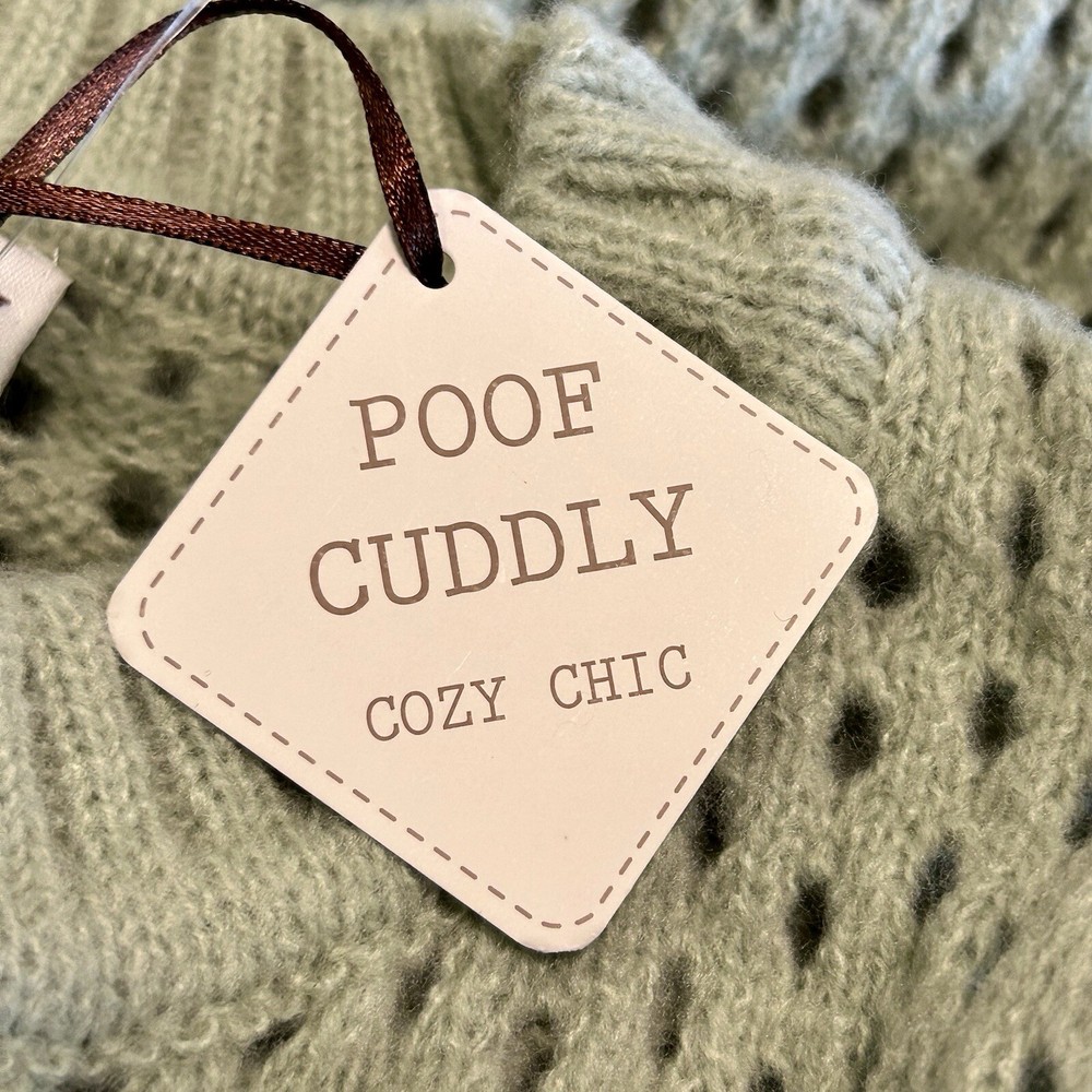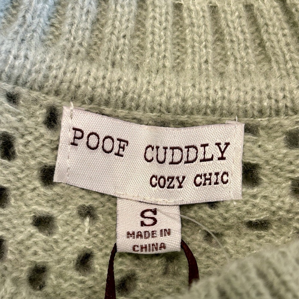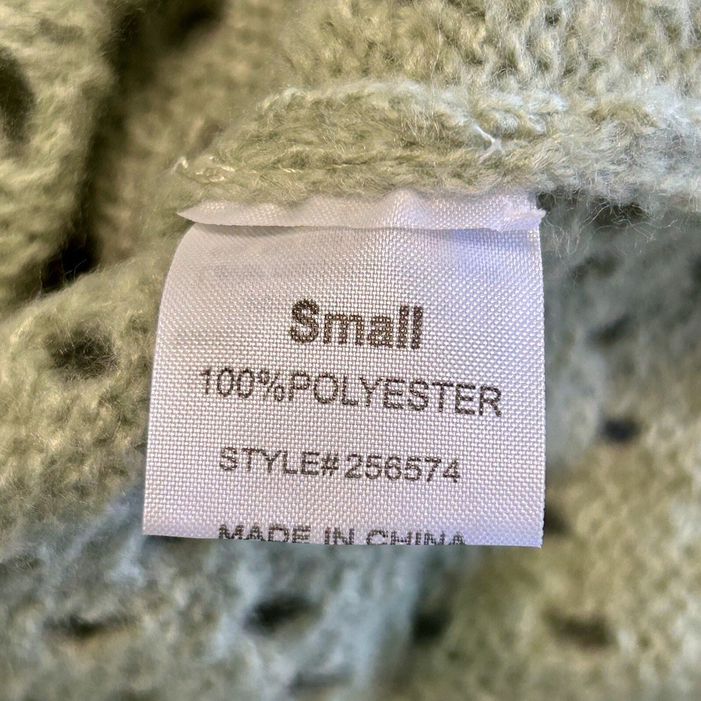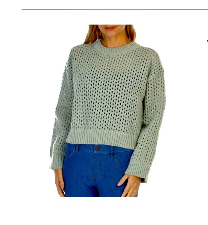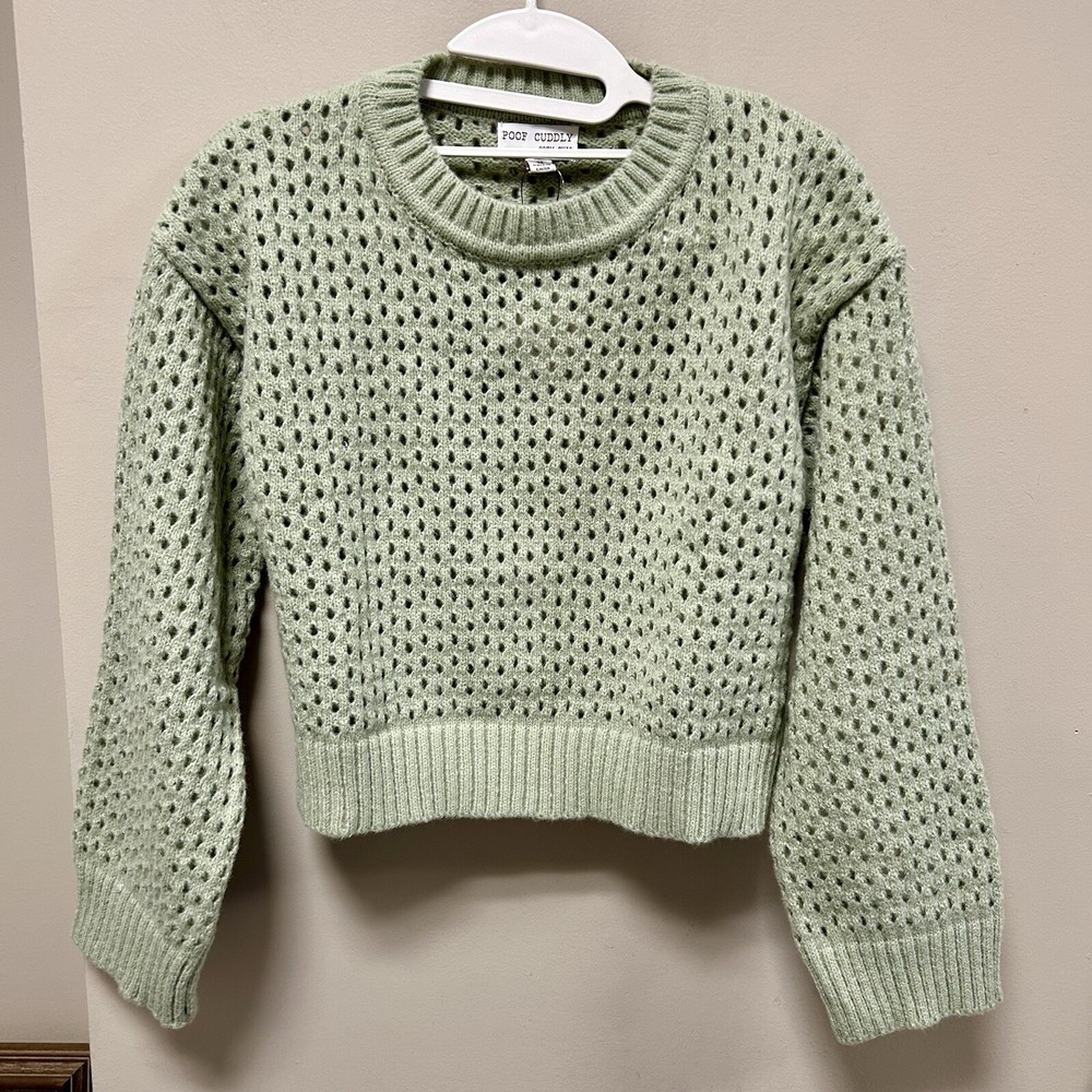 This Poof sweater is the perfect addition to your wardrobe! With its chic and stylish design, it's sure to turn heads wherever you go. The light green color and crochet fabric type make it a unique piece that will make you stand out. It's a juniors size small and features a crew neckline, making it comfortable and easy to wear. The pullover style is perfect for any occasion, whether you're dressing up or down. Don't miss out on this trendy sweater that will become a staple in your wardrobe. 20.5” armpit to armpit 19” sleeves 18” long