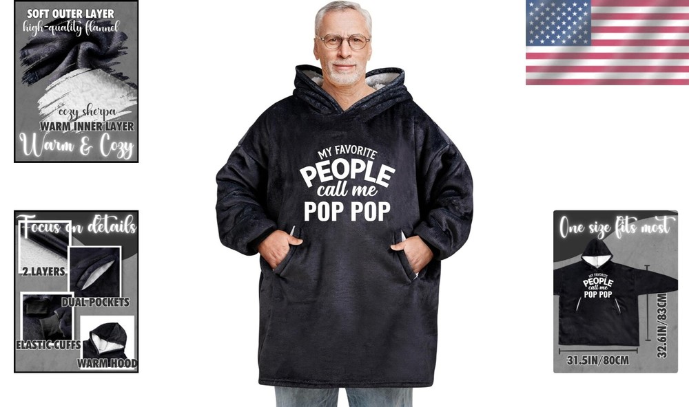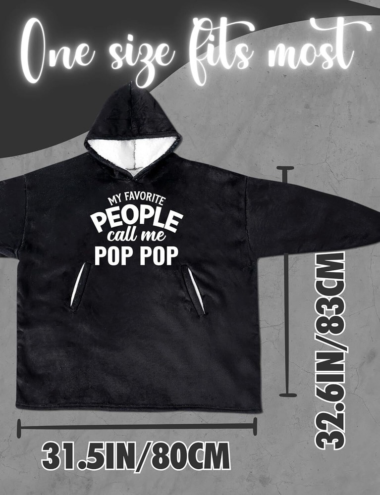Pop Pop Gifts Wearable Blanket Hoodie - Cozy One Size for Dad, Christmas & More < class="slides"> ‹ › ‹ › ‹ › ‹ › ‹ › ‹ › ‹ › ‹ › ‹ › Wearable Blanket Hoodie - Cozy One Size for Dad, Perfect for Christmas & More Features: Fabric: polyester for ultimate softness and durability. Care: Easily machine washable for convenient maintenance. Origin: Imported, crafted with exceptional quality. One size fits most, making it ideal for any adult. Benefits: Love-Filled Gift: Surprise your special someone with this creative and unpredictable gift choice—much better than a t-shirt or mug! Comfort and Coziness: The double-layer design offers warmth and security, providing a snug embrace that feels like home. Convenience and Mobility: Unlike traditional blankets, this wearable hoodie allows for freedom of movement, making it perfect for lounging or quick naps. Generous Size: Designed to wrap comfortably around any adult, ensuring that your recipient is always enveloped in love. Long-Lasting Quality: Crafted with workmanship, the screen printing remains vibrant even after multiple washes. Why Choose Our Wearable Blanket Hoodie? Looking for the perfect gift that conveys warmth and affection? Our Wearable Blanket Hoodie is undoubtedly the ideal choice. Perfect for any occasion—Father's Day, birthdays, holidays, or simply because—you'll provide dad (or anyone special) with a cozy companion they can cherish every day. Embrace the gift of comfort and creativity. Order your Wearable Blanket Hoodie today and make any moment memorable! Shipping Free & Fast Shipping - We offer free shipping to most of the USA with a normal delivery time of 3-7 days. However, due to the current situation, additional delivery time (up to 3 weeks) may be required for some items. Alternative Carriers - We may use alternative carriers (e.g. USPS, FedEx, UPS, etc.) to ensure your package arrives safely and on time. Due to the use of multiple carriers, we are unable to provide a tracking number automatically. Handling Time - Orders are processed and shipped within 1-2 business days of receiving cleared payment. Shipping Restrictions - Shipping to Alaska, Hawaii, Puerto Rico, Guam, and other US territories may incur shipping charges or delivery restrictions. Please contact us before ordering, or your order can be refunded/cancelled. State Restrictions - There may be restrictions based on your state of purchase. For example, certain items may not be shipped to California due to state regulations. Contact for Tracking Updates - If you require tracking updates or have any concerns about the delivery of your order, please feel free to contact us, and we will be happy to assist you. Return 30-Day Hassle-Free Returns - We want you to be completely satisfied with your purchase. If you are not, you can return the item within 30 days of receiving it for a full refund or exchange. Easy Return Process - To start a return, simply contact us and we will provide you with a prepaid return shipping label and detailed instructions. Restocking Fee - There are no restocking fees for returns. However, the buyer is responsible for return shipping costs if the return is not due to a seller's error. Refund Processing Time - Refunds will be processed within 5 business days of receiving the returned item in its condition. Payment We accept all major credit cards, PayPal, and Apple Pay for your convenience. Your payment information is secure and encrypted to ensure a safe and seamless transaction. Please complete your payment within 3 days of purchase to avoid any delays in shipping. Feedback Your feedback is extremely important to us. We strive to provide the best products and customer service possible. If you are satisfied with your purchase, please take a moment to leave us a positive review. If you have any concerns or issues with your order, please contact us before leaving negative feedback. We are committed to resolving any problems and ensuring your satisfaction. Contact Us If you have any questions or concerns, please feel free to out to our customer support team. You can contact us through the eBay messaging system. We are available Monday to Friday, 9:00 am to 5:00 pm EST, and we will do our best to respond to your inquiry within 24 hours. Buy it now and enjoy a pleasant shopping experience! Unit Quantity: 2.12 Material: Polyester Features: Machine Washable,Comfort and Coziness,Convenience and Mobility,Long-Lasting,Snuggly Sensation,Exceptional Comfort Care Instructions: Machine Wash Department: Mens Room: Living Room,Office Size: One Size Type: Hooded Blanket Color: Multicolor Style: Modern Shape: Rectangular Insulation: All Seasons Closure Type: No Closure GSM (Grams per Square Meter): Below 150 Thread Count: 201-400 Unit Type: lb